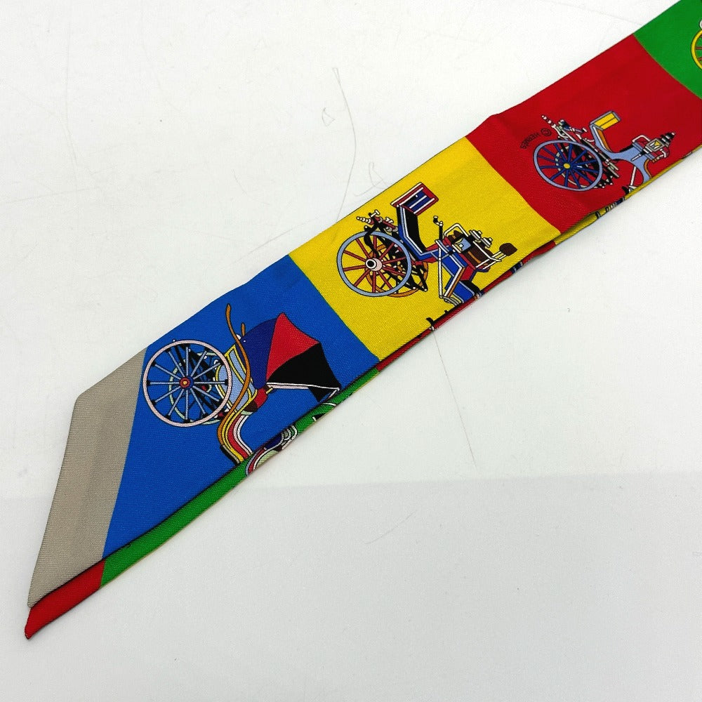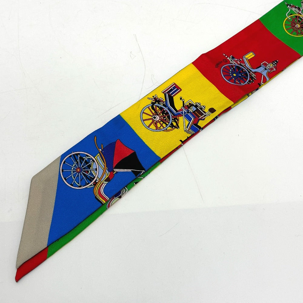 HERMES Horse-Drawn Twilly Scarf, Silk, Women's, Multicolor