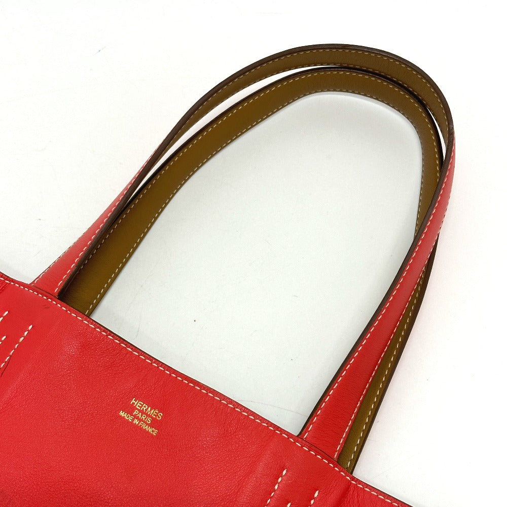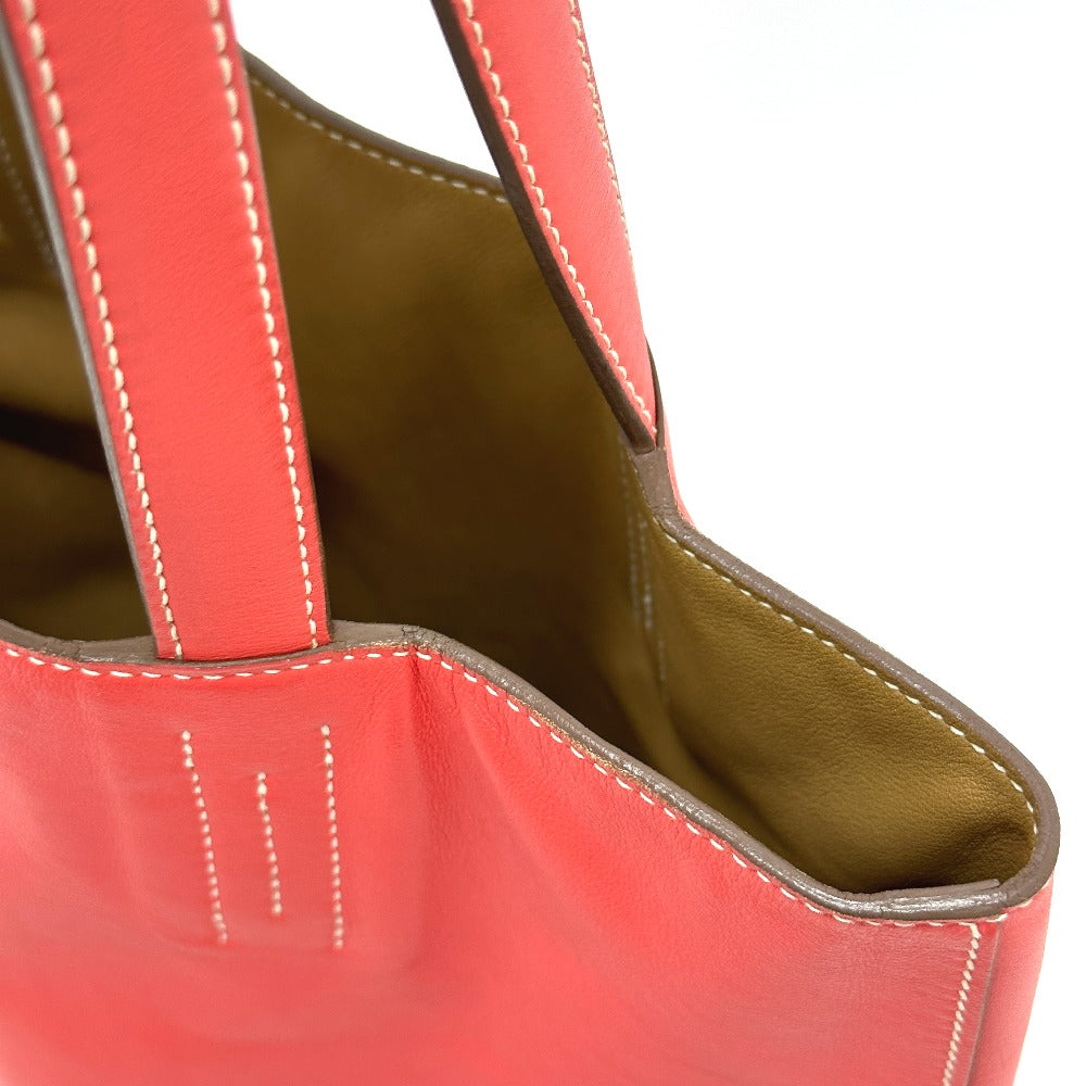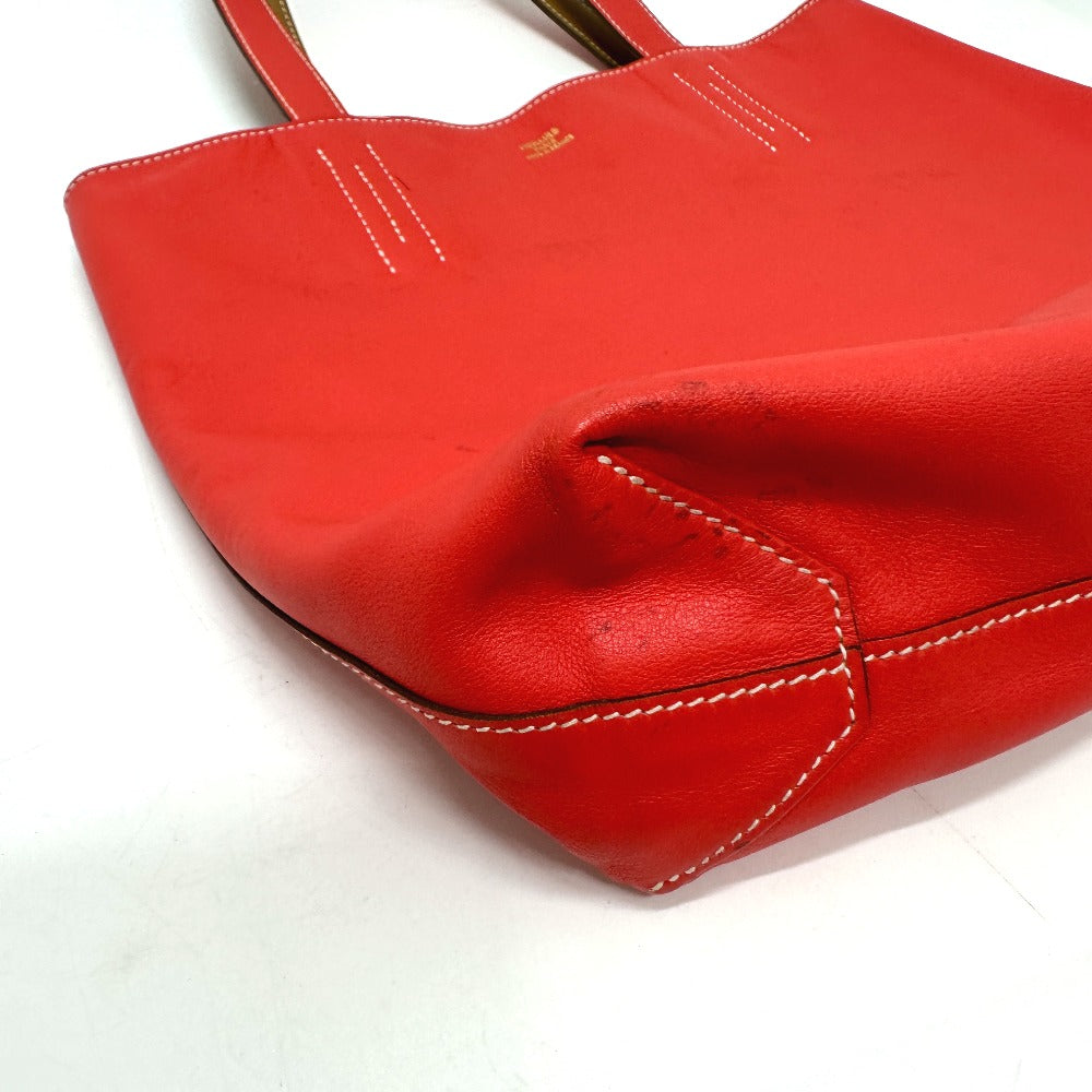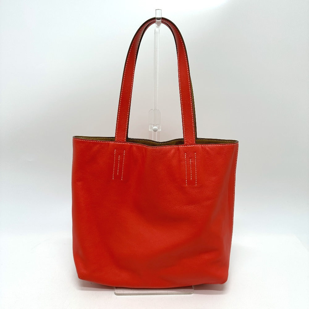 HERMES ドゥブルセンス 28 リバーシブル 肩掛け トートバッグ レザー レディース ベージュ/ピンク