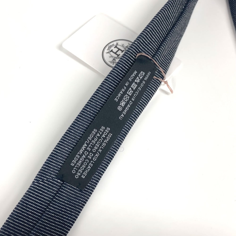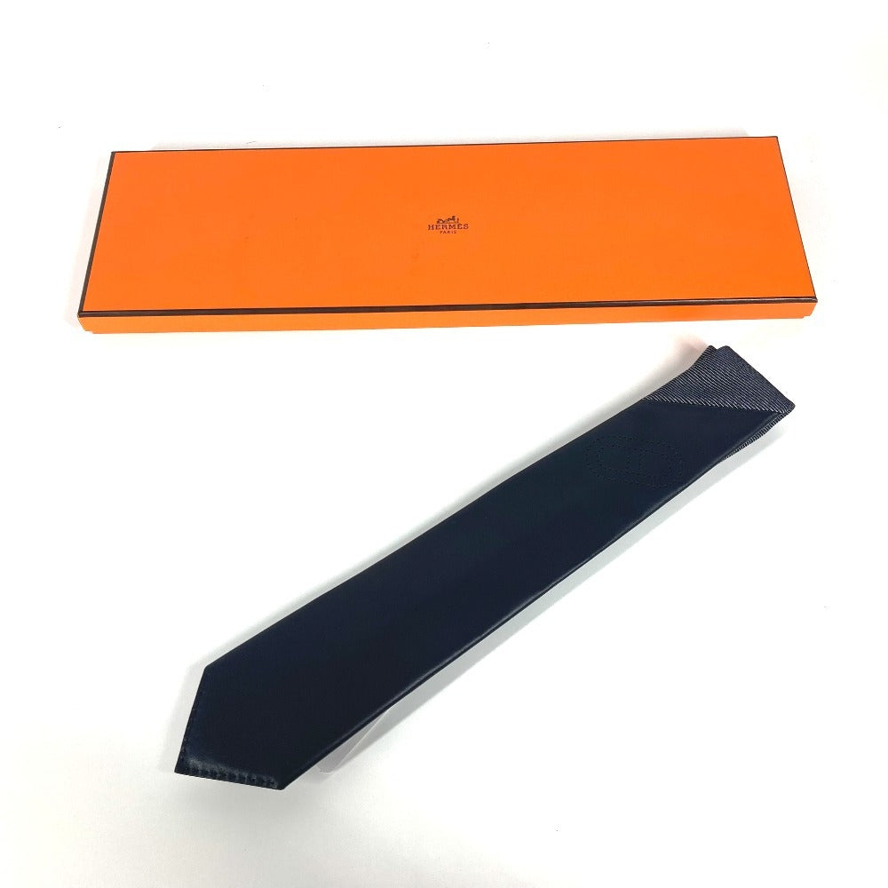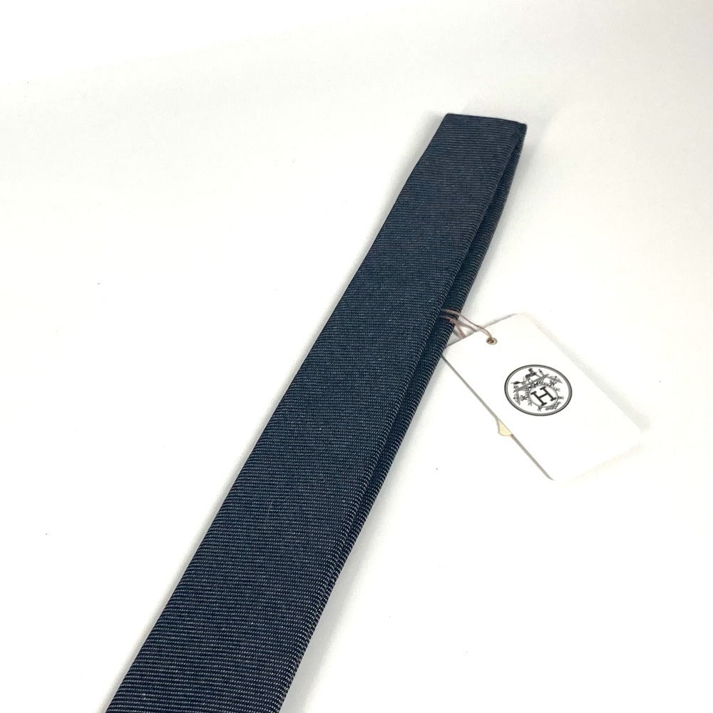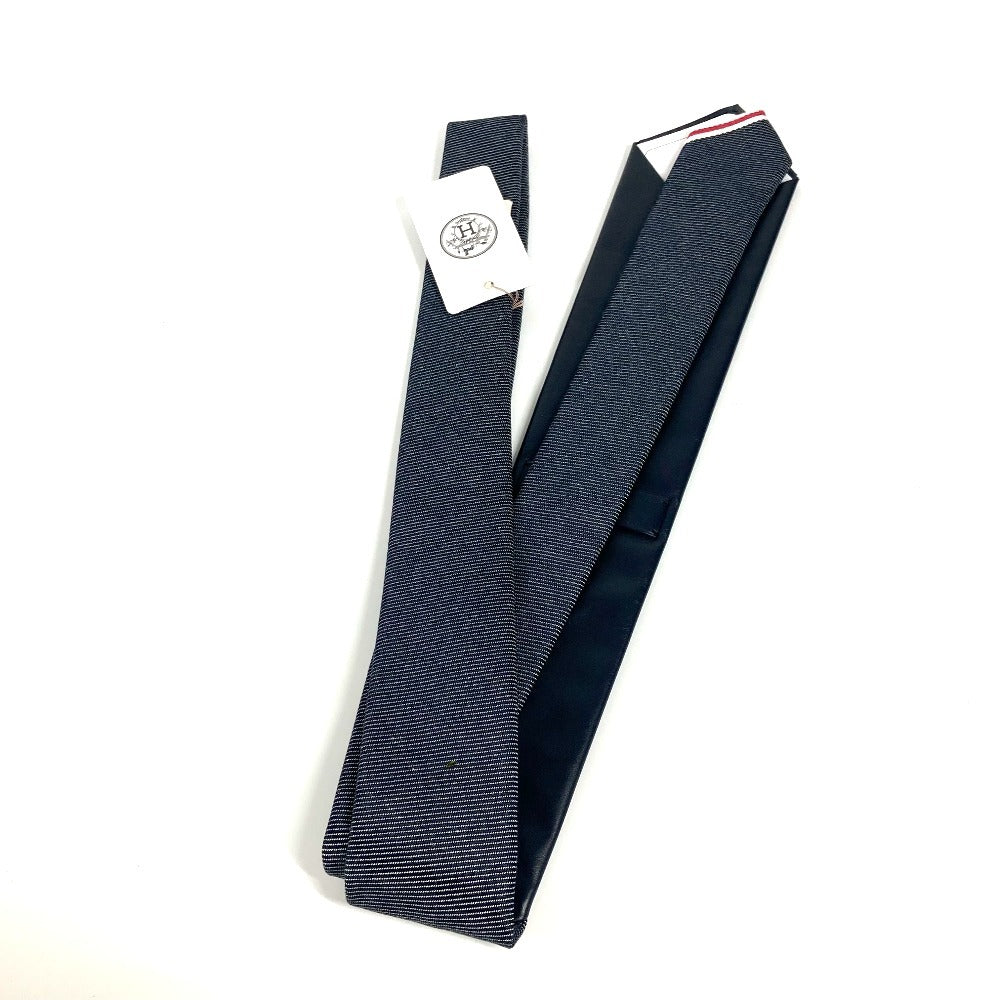 HERMES デニム ネクタイ 《マイヨン》 レザーディテール シェーヌダンクル アクセサリー ネクタイ コットン メンズ マリン ネイビー