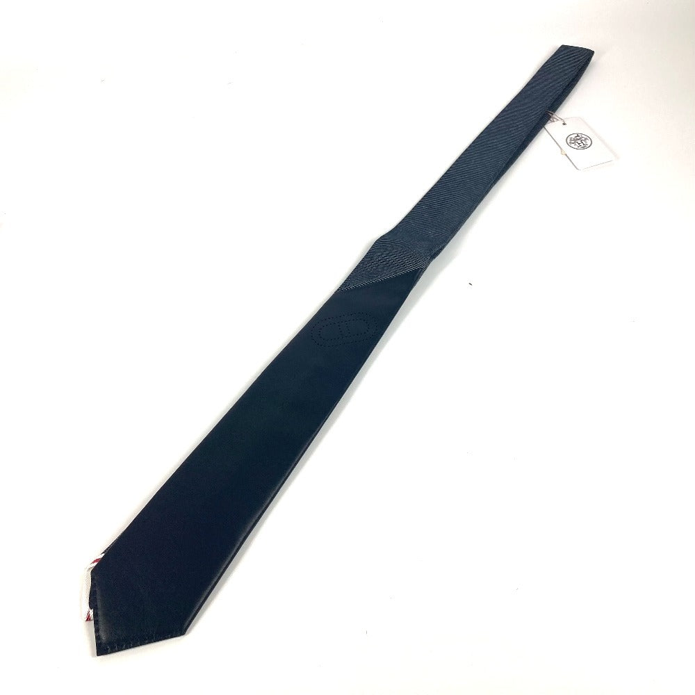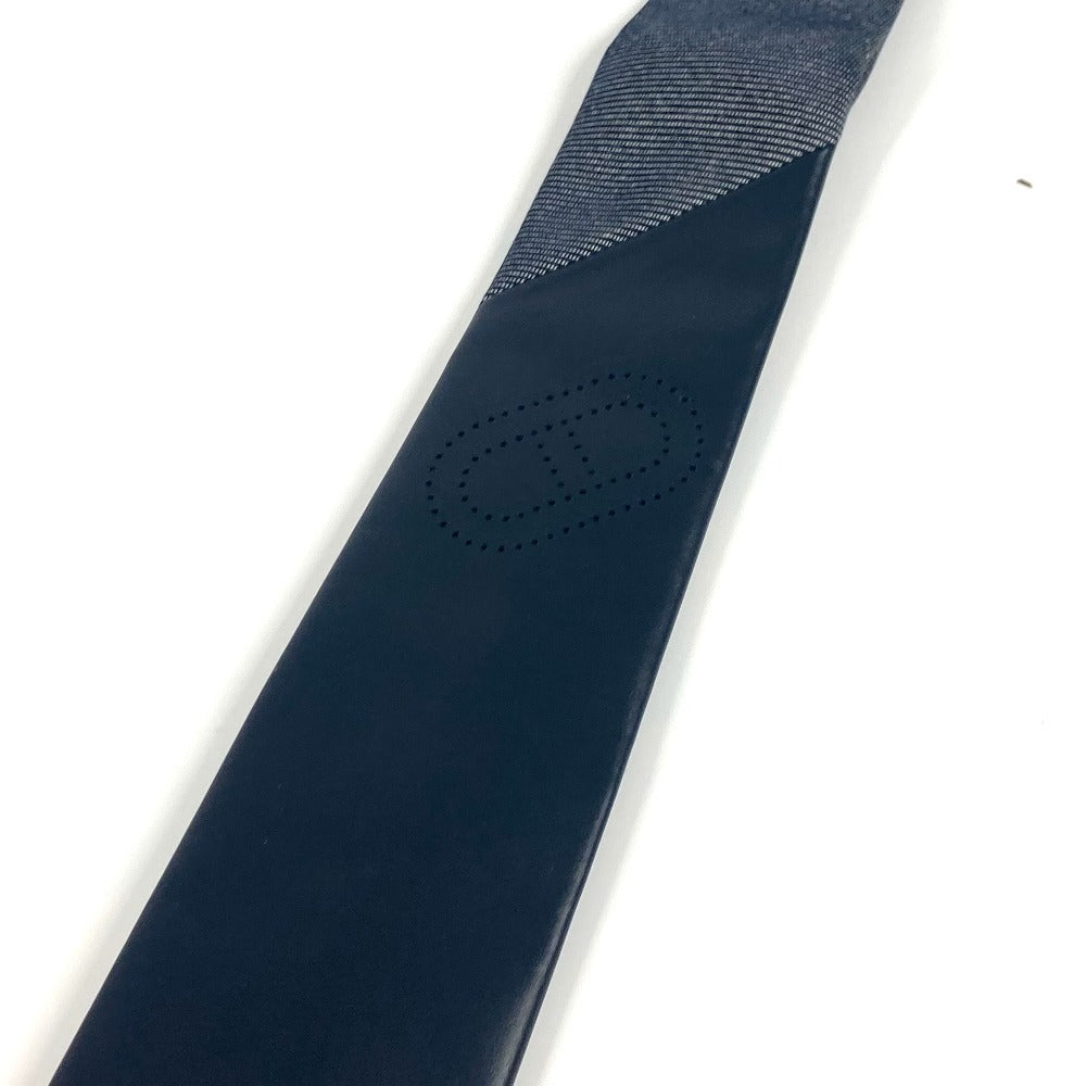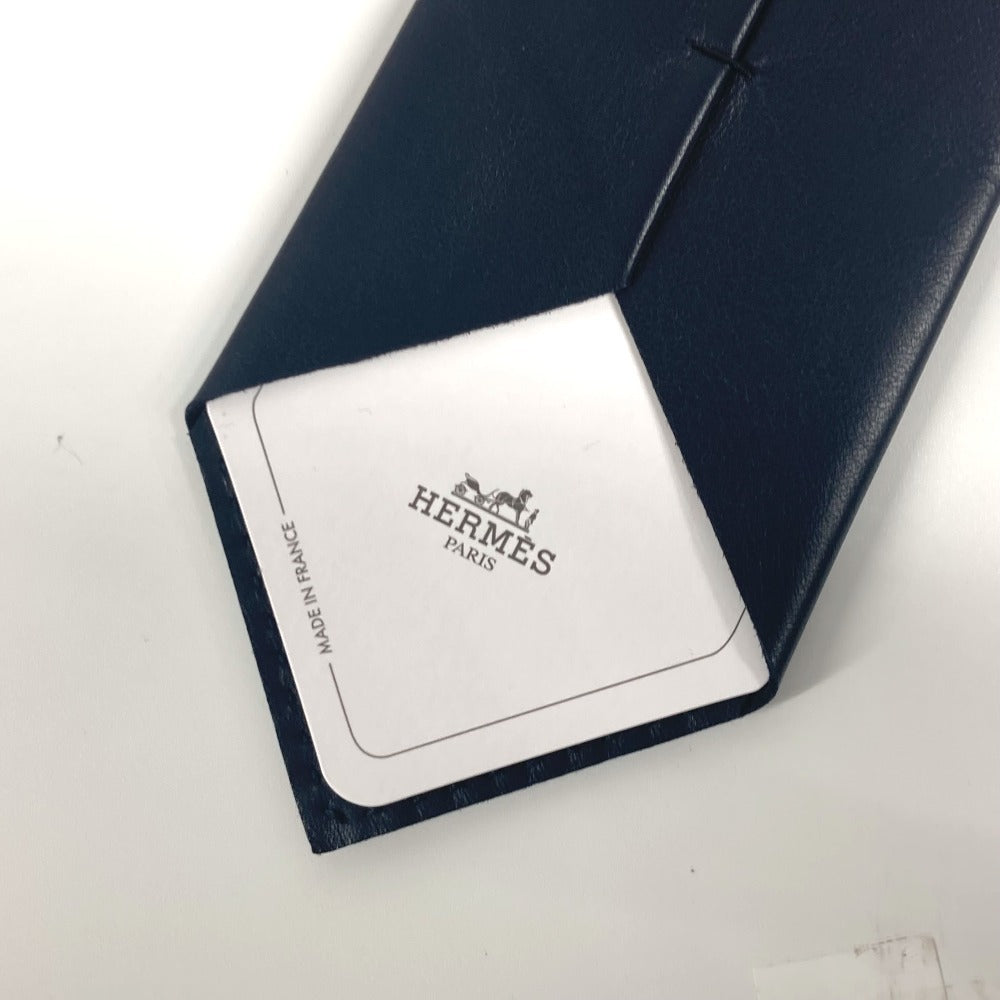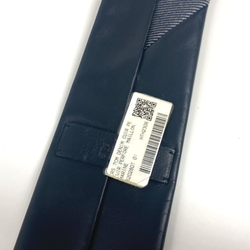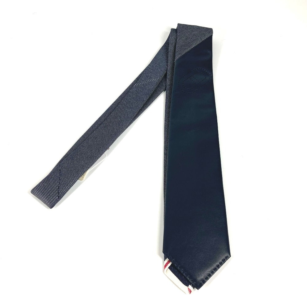 HERMES デニム ネクタイ 《マイヨン》 レザーディテール シェーヌダンクル アクセサリー ネクタイ コットン メンズ マリン ネイビー