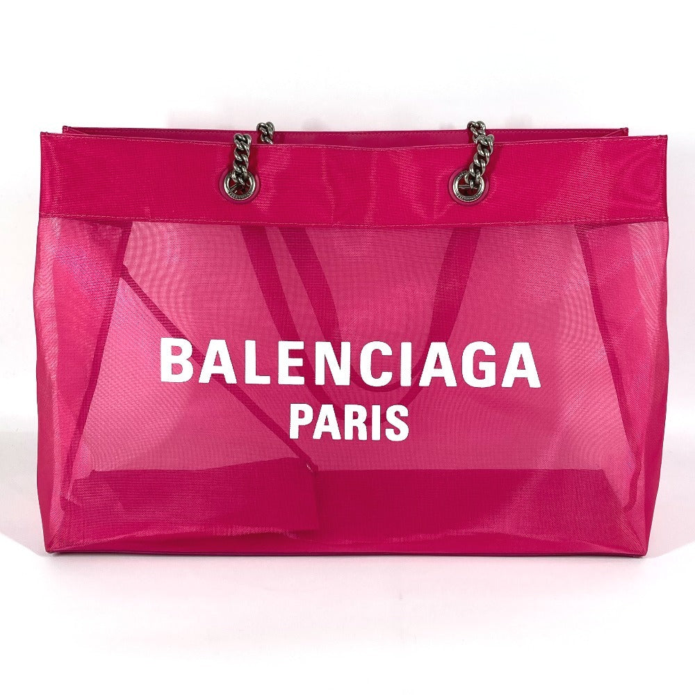 BALENCIAGA 741605 メッシュ ポーチ付き DUTY FREE LARGE ロゴ 肩掛け カバン トートバッグ ショルダーバッグ ポリエステル レディース ピンク