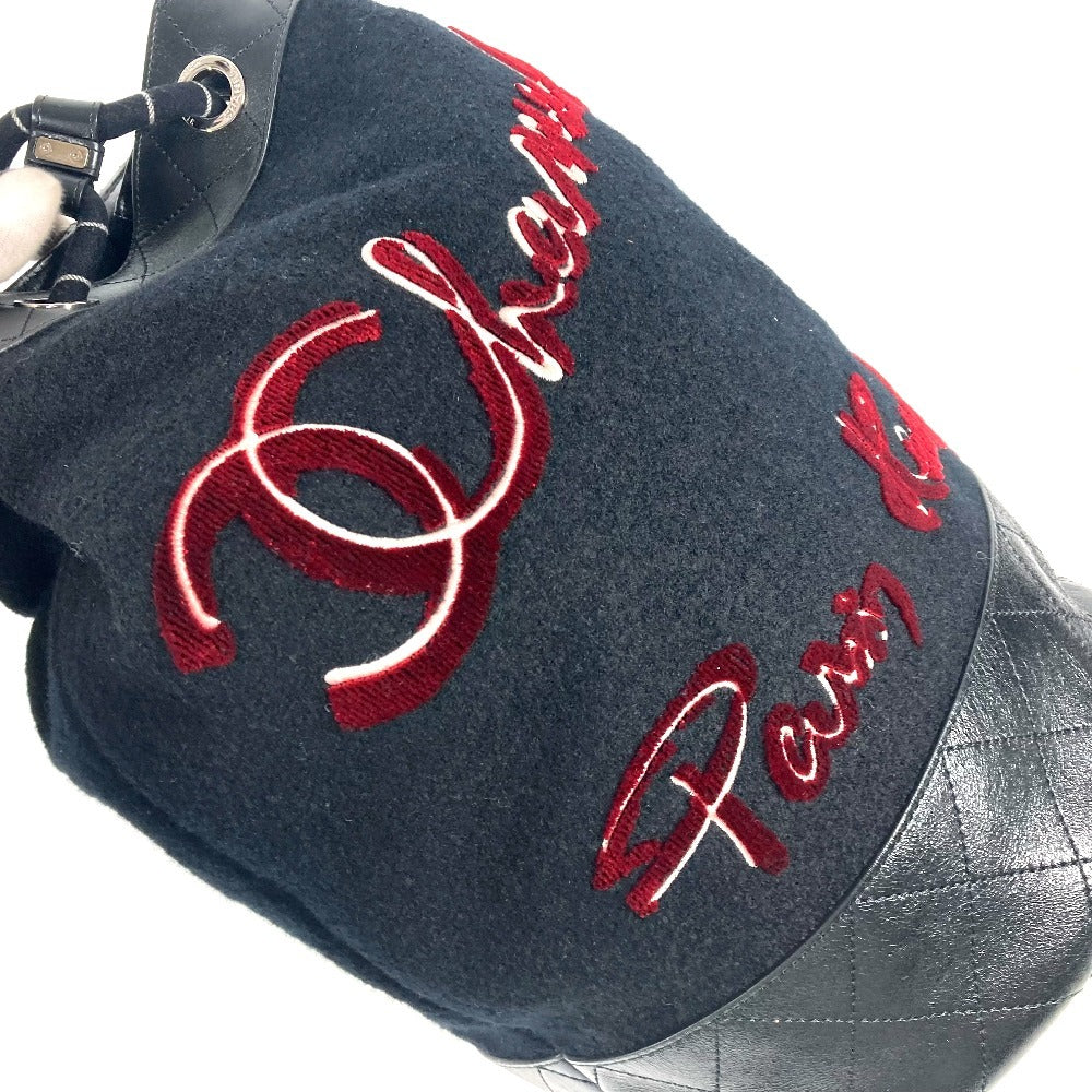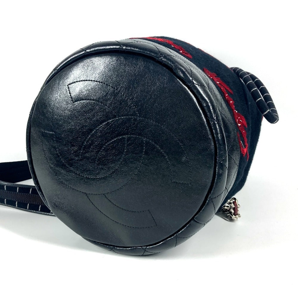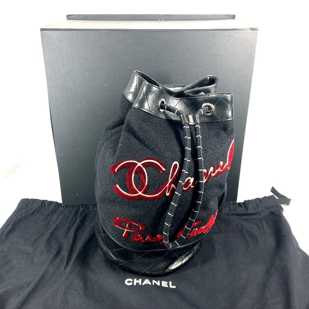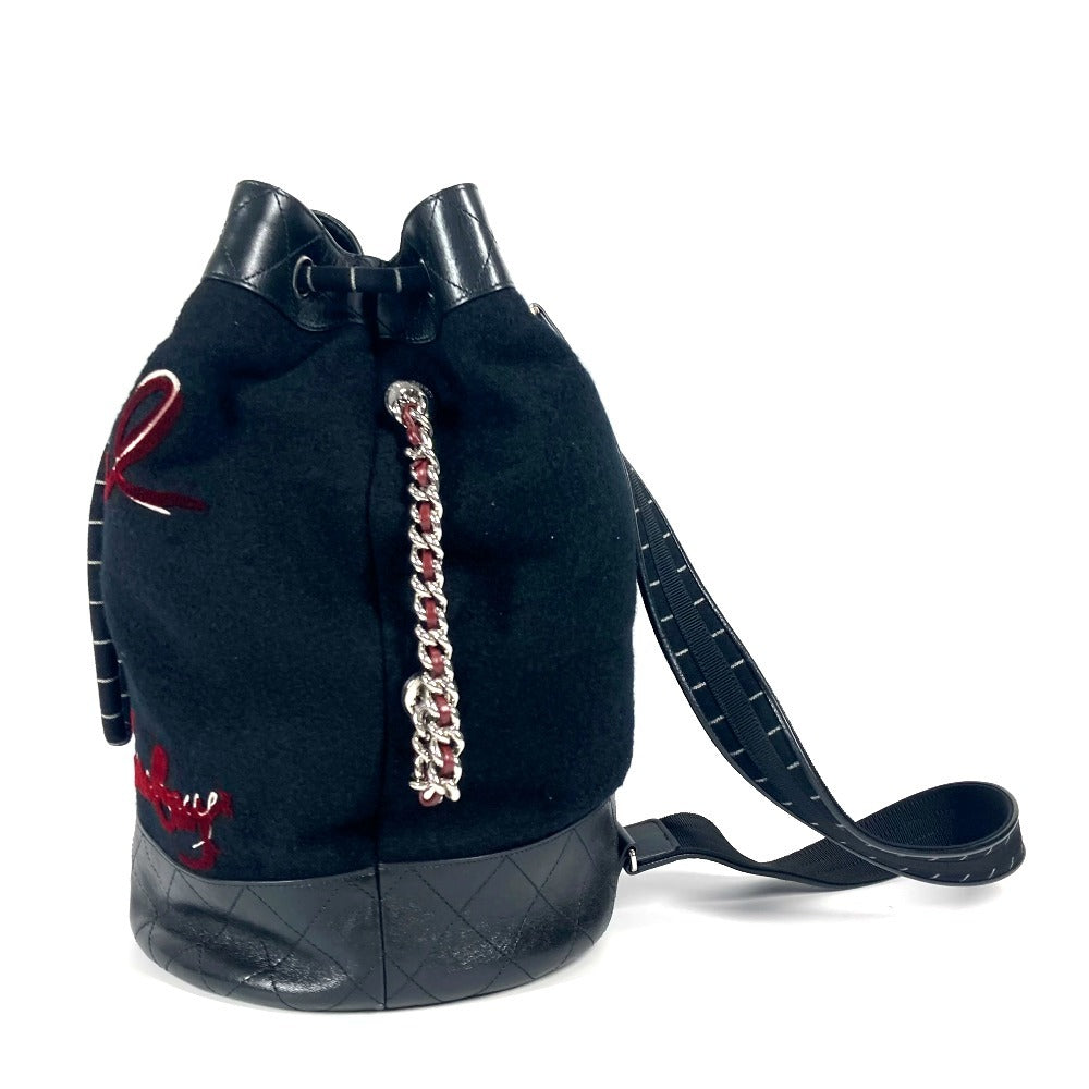 CHANEL A57519 エンブロイダリー カバン 巾着バッグ 肩掛け チェーン ショルダーバッグ ウール レディース ブラック