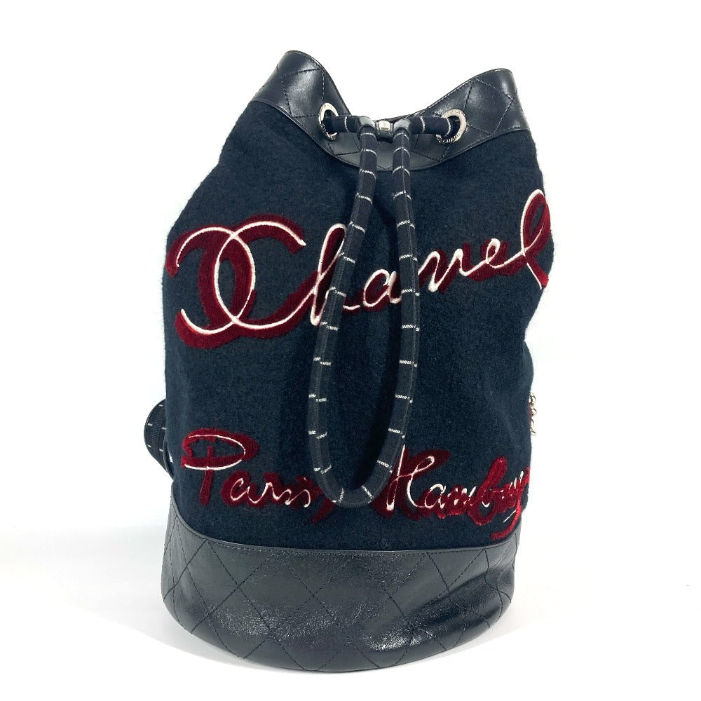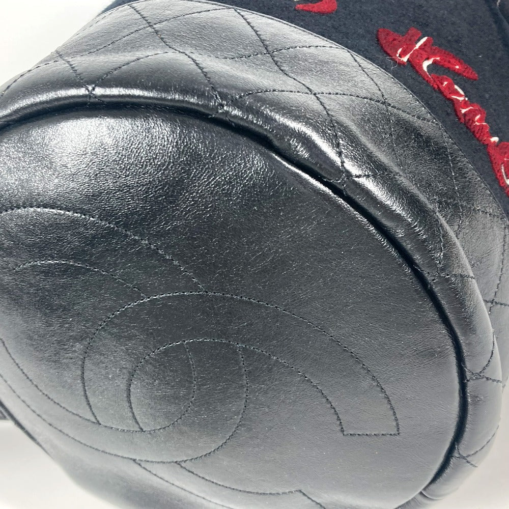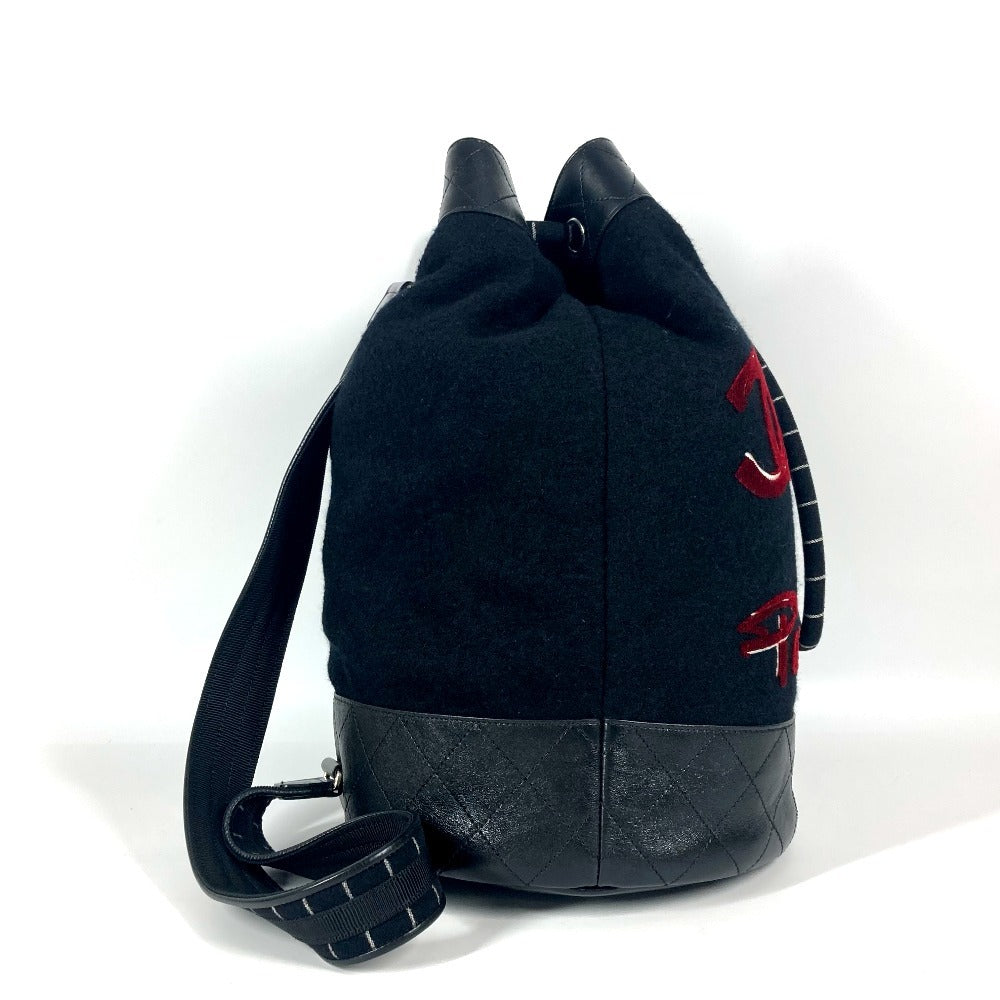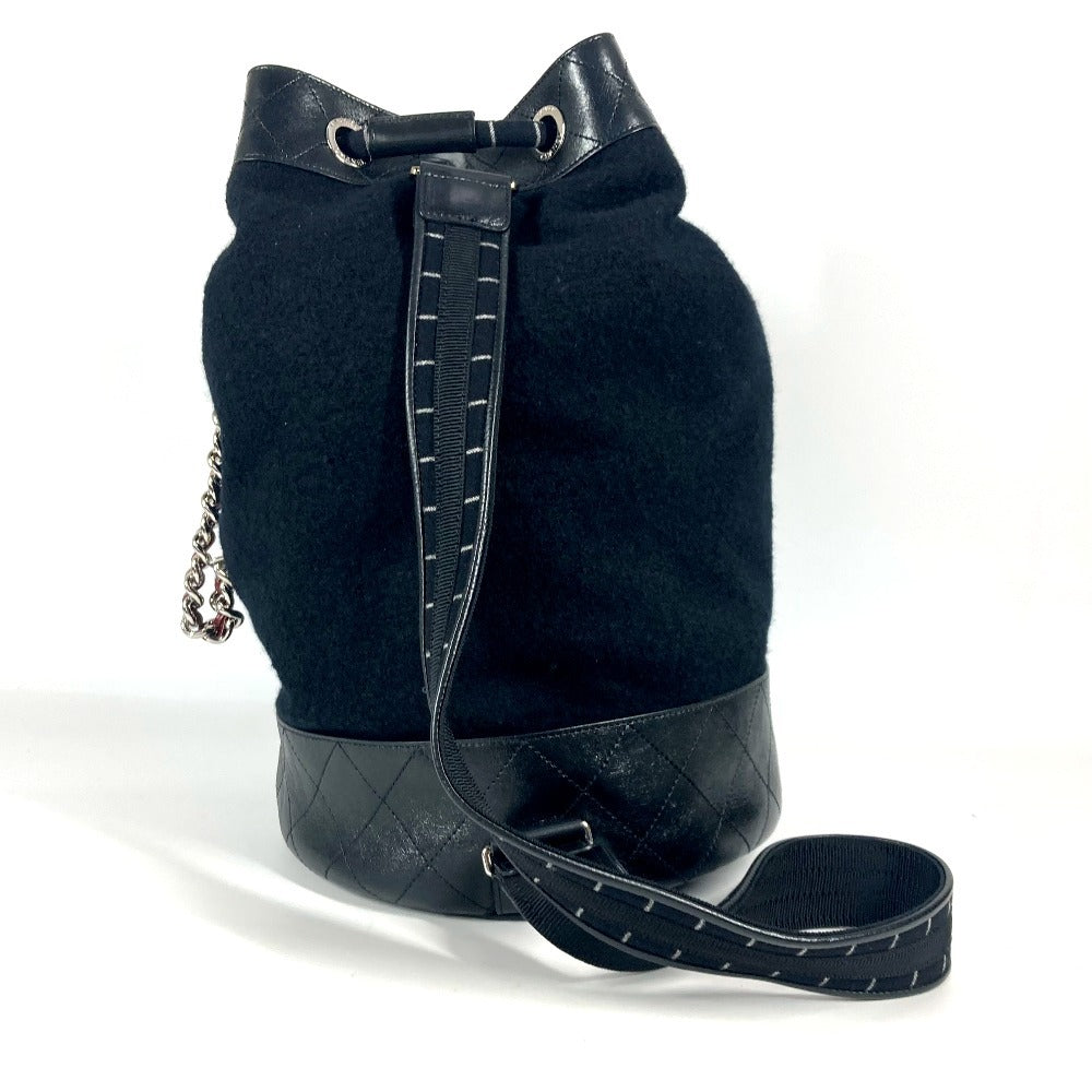 CHANEL A57519 エンブロイダリー カバン 巾着バッグ 肩掛け チェーン ショルダーバッグ ウール レディース ブラック