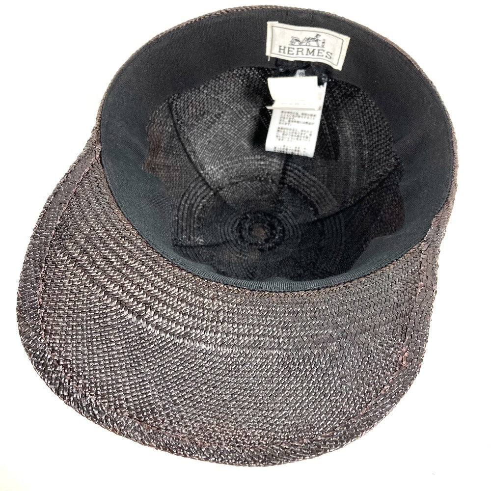 HERMES セリエ ロゴ 帽子 キャップ帽 ベースボール キャップ ストロー レディース ブラック