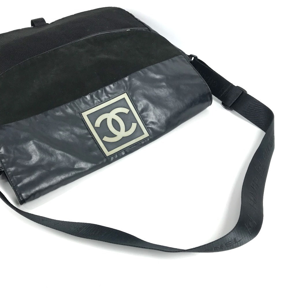 CHANEL スポーツ ロゴ CC ココマーク カバン 斜め掛け フラップ ショルダーバッグ コーティングキャンバス ユニセックス ブラック