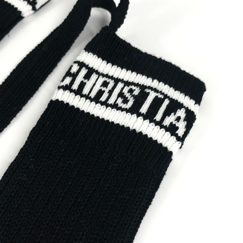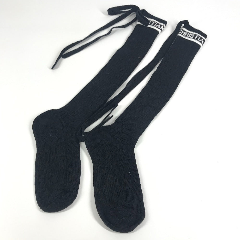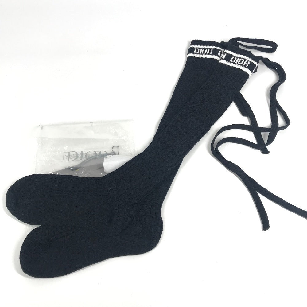 Dior リボン りぼん ロゴ ニーハイソックス ハイソックス アクセサリー バイカラー 靴下 コットン レディース ブラック