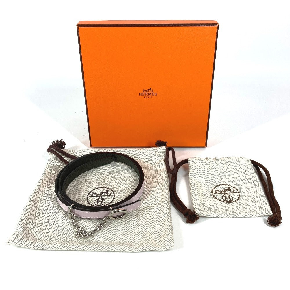 HERMES Carrousel Belt, Thin Leather Chain Belt, Epson, Women's, Vert Maki/Mauve Pale, Pink and Khaki