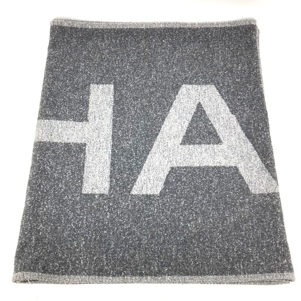 CHANEL 19K ロゴ 大判 ストール ブランケット マフラー カシミヤ ユニセックス グレー