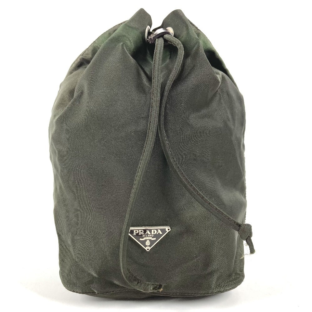 PRADA 巾着ポーチ トライアングルロゴ 三角ロゴ プレート マルチポーチ ポーチ ナイロン ユニセックス カーキ