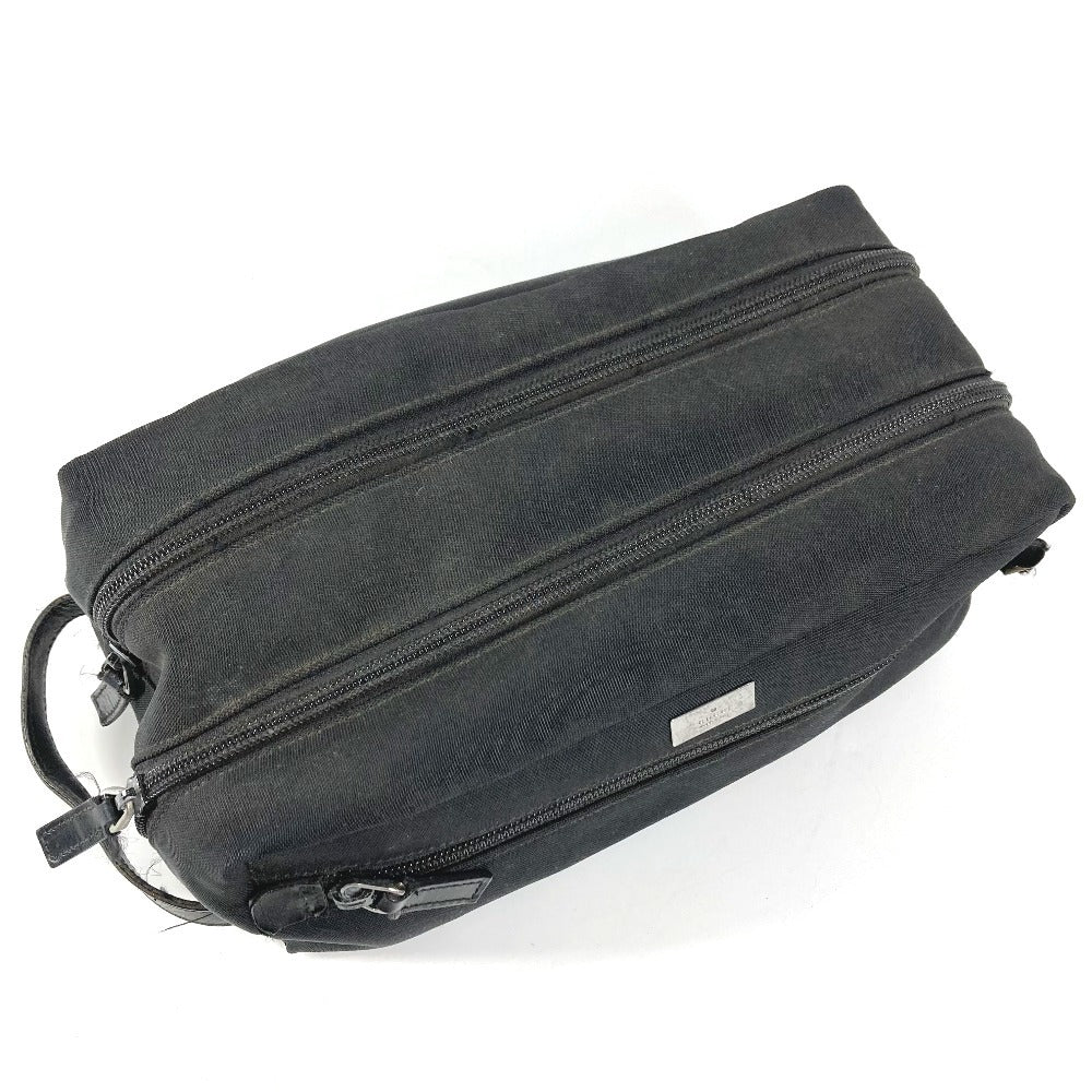 GUCCI 02888 ロゴ Wジップ ジップ カバン ポーチ クラッチバッグ 持ち手つき セカンドバッグ レザー/キャンバス ユニセックス ブラック