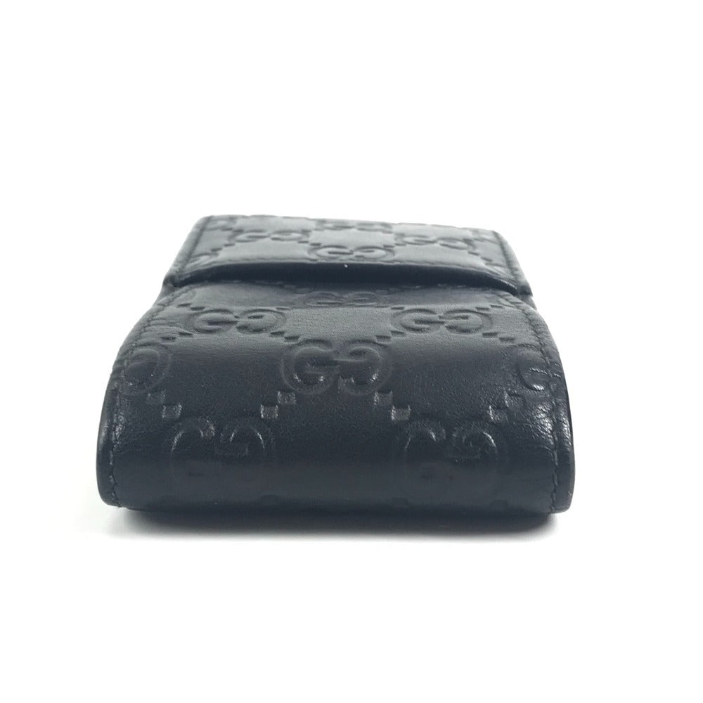 GUCCI 181716 グッチシマ ロゴ GG ポーチ タバコケース フラップ シガレットケース シマレザー ユニセックス ブラック