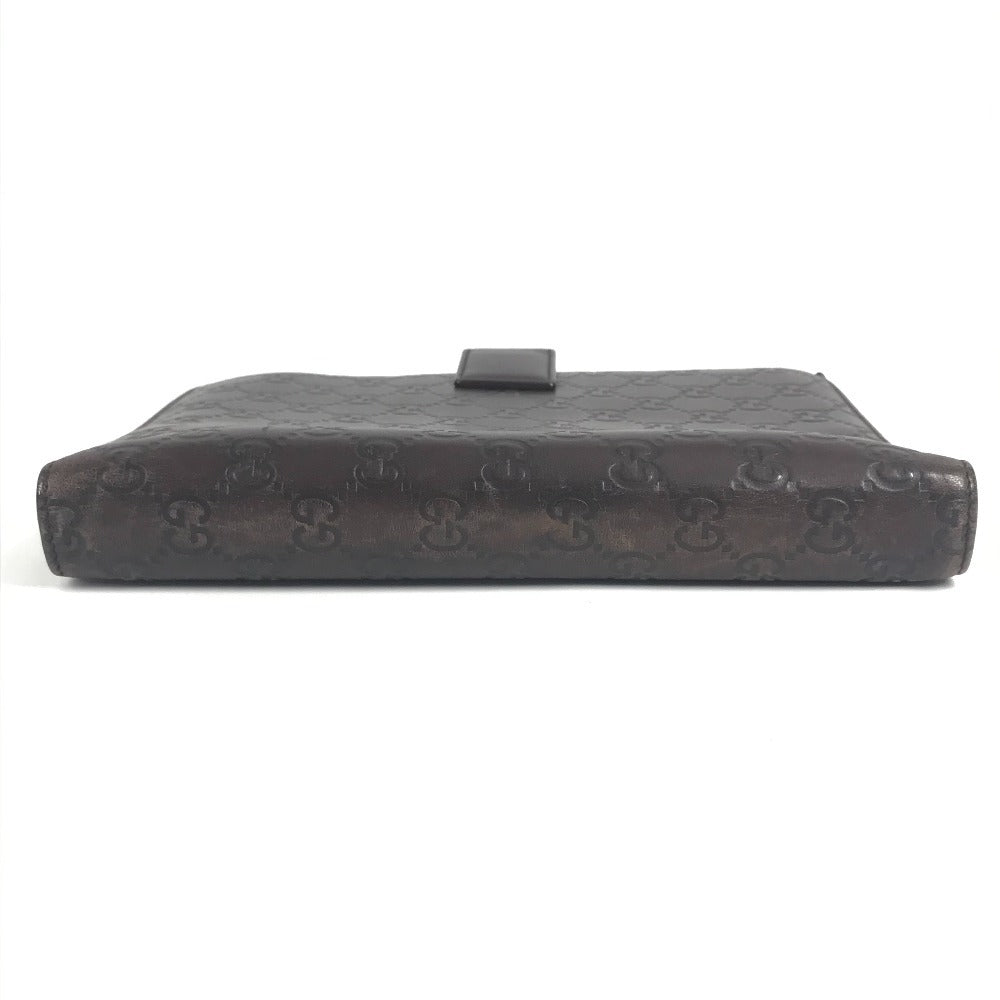 GUCCI 115239 グッチシマ ロゴ GG ステーショナリー 2つ折り ケース ノートカバー シマレザー ユニセックス ブラウン