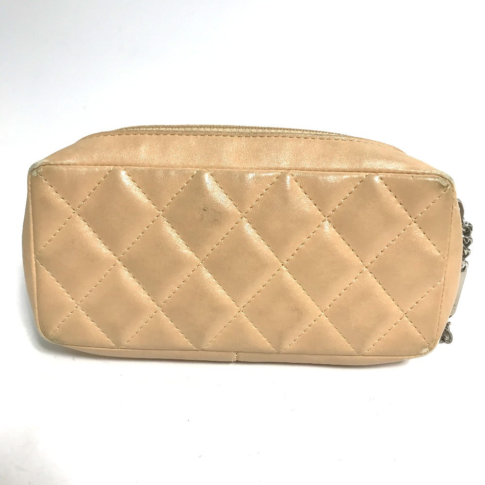 CHANEL カンボンライン CC ココマーク メイクポーチ 化粧ポーチ レザー レディース ベージュ
