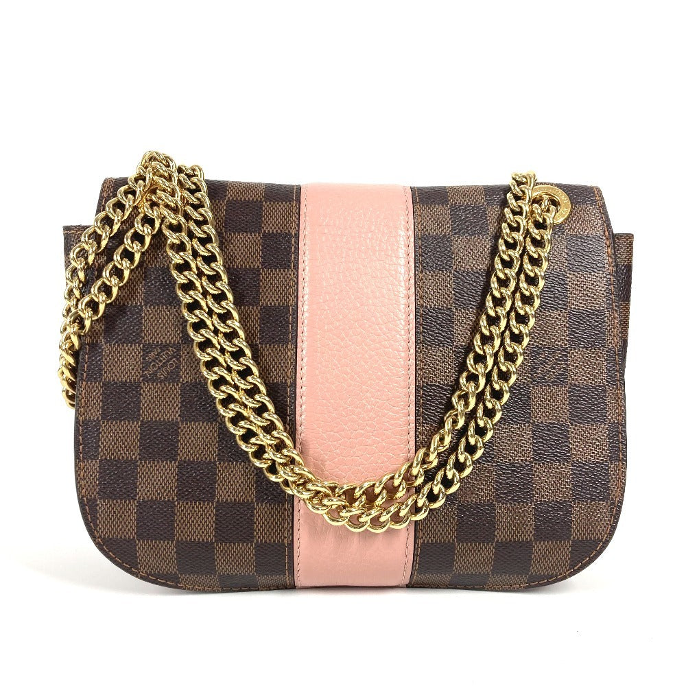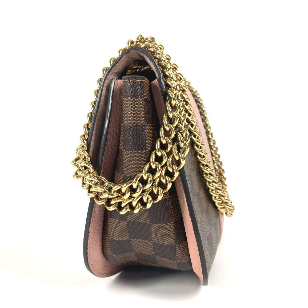 LOUIS VUITTON N64418 ダミエ ワイト カバン 斜め掛け フラップ ポシェット Wチェーン ショルダーバッグ ダミエキャンバス レディース ピンク