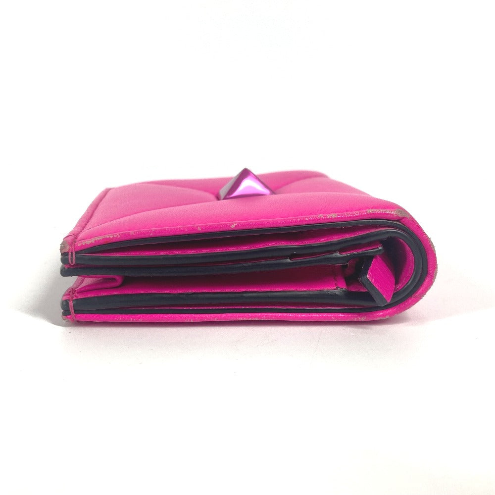 VALENTINO スタッズ ロゴ コンパクトウォレット 財布 2つ折り財布 レザー レディース ピンク