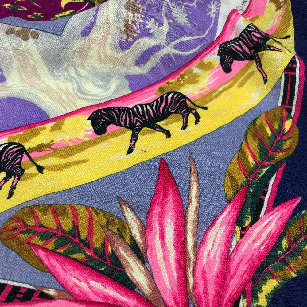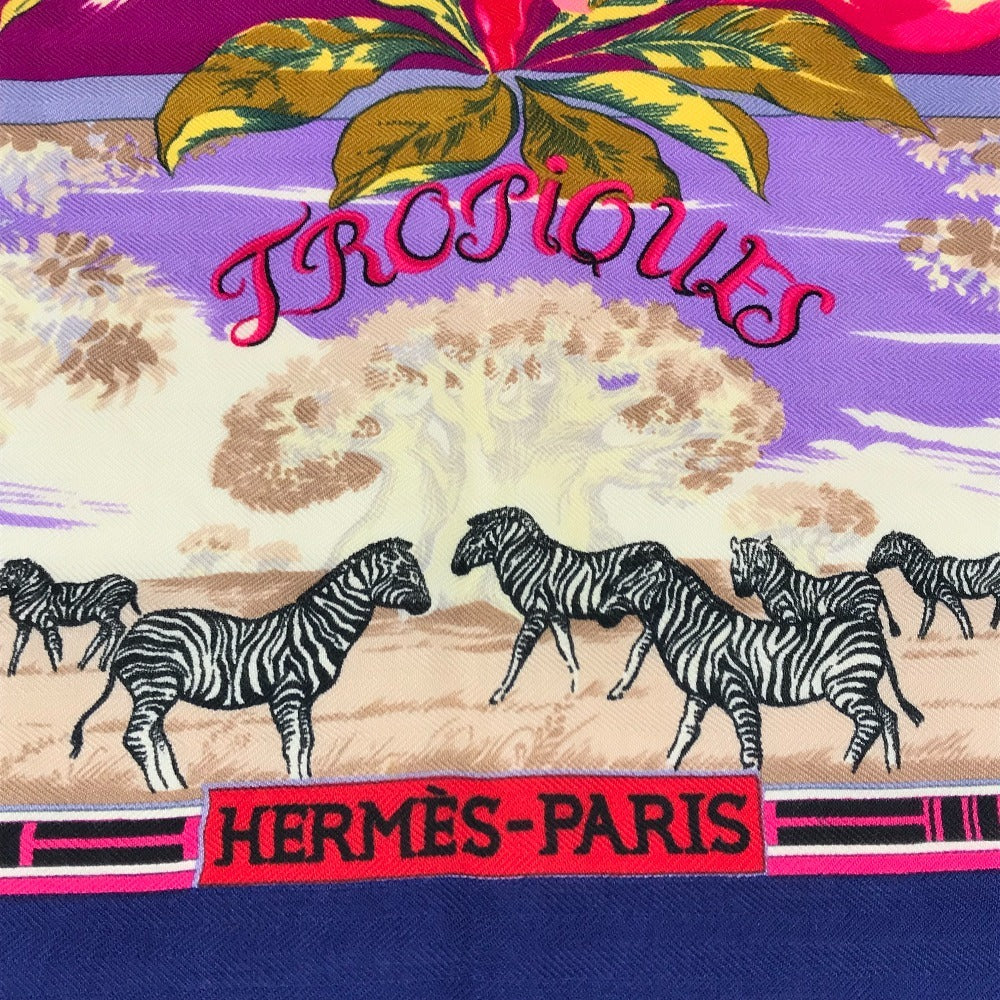 HERMES TROPIQUES トロピック カレジェアン 140 カレジェアン140 ショール ストール 大判 スカーフ カシミヤ レディース ブルー
