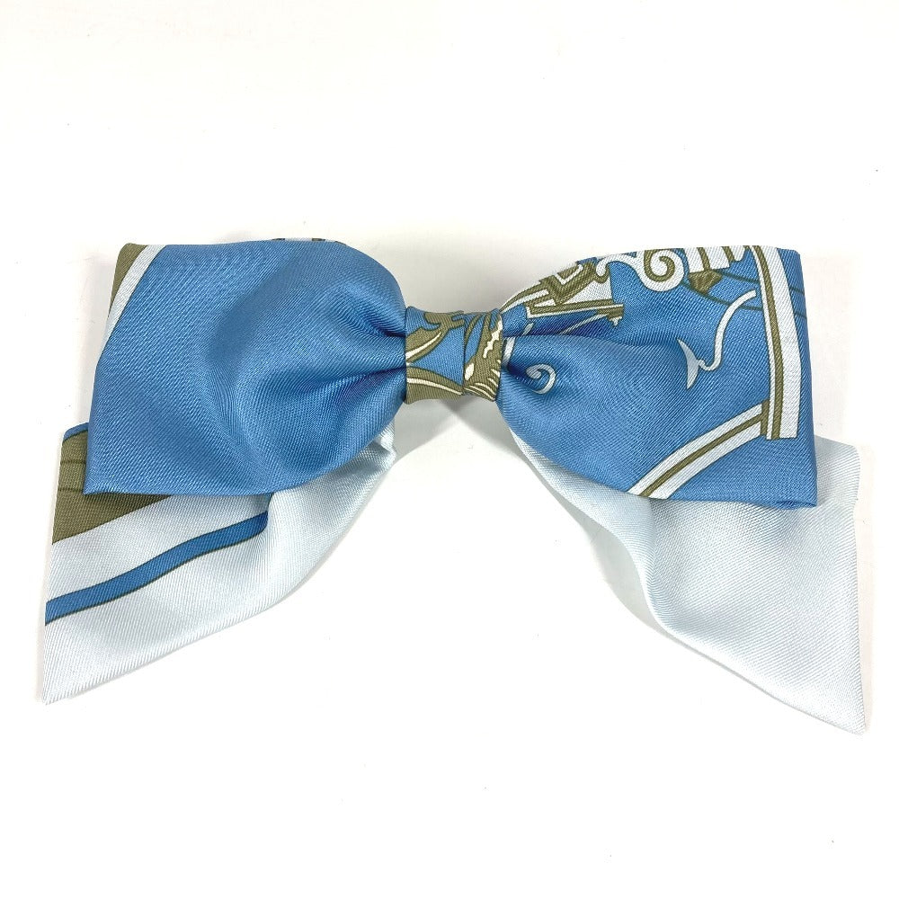 HERMES エクスリブリス バレッタ 《グルネル》エクスリブリス ヘアアクセサリー リボン りぼん バレッタ シルク レディース ブルー
