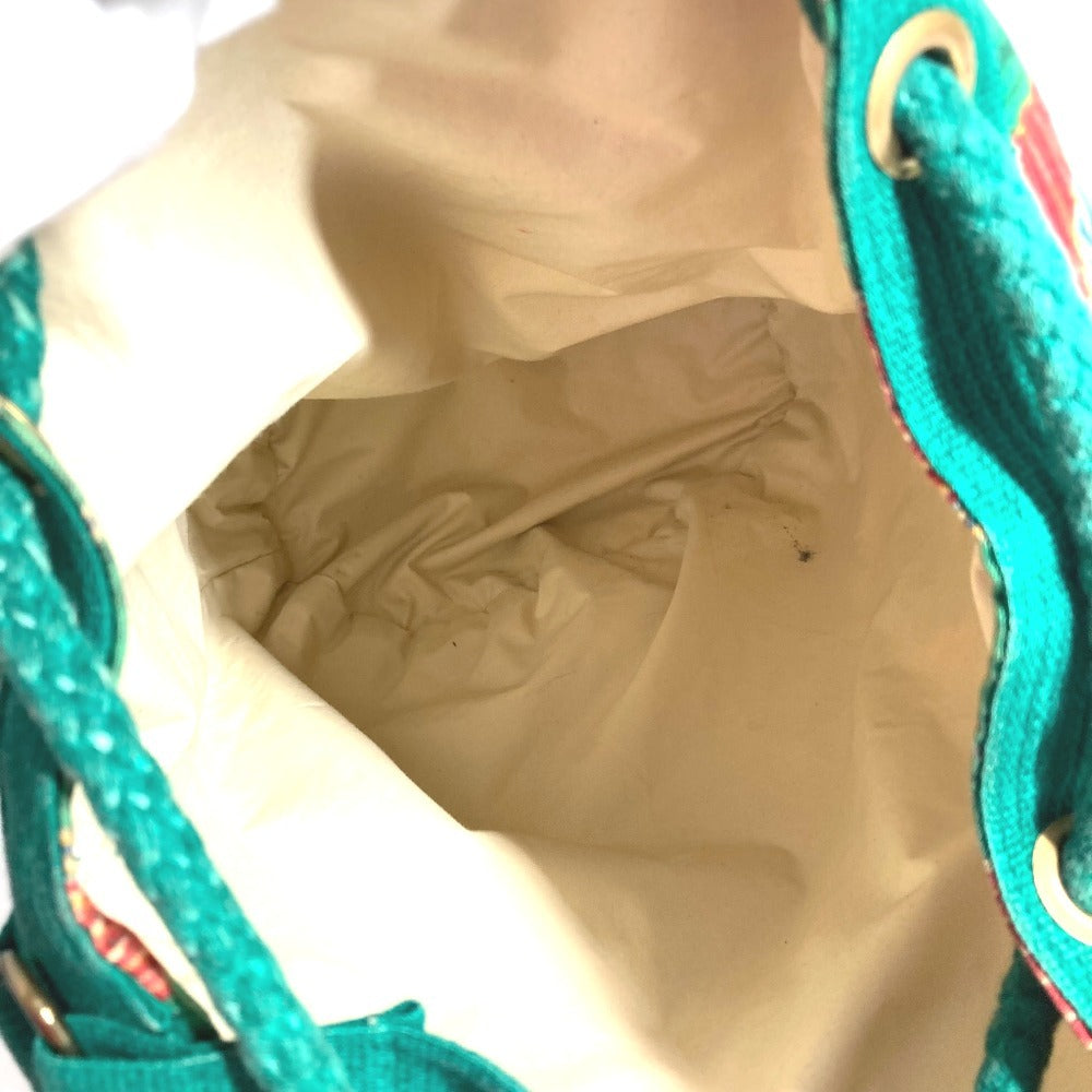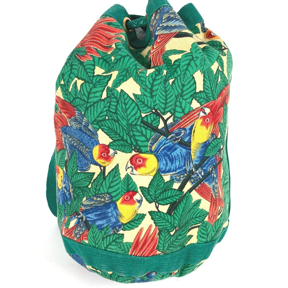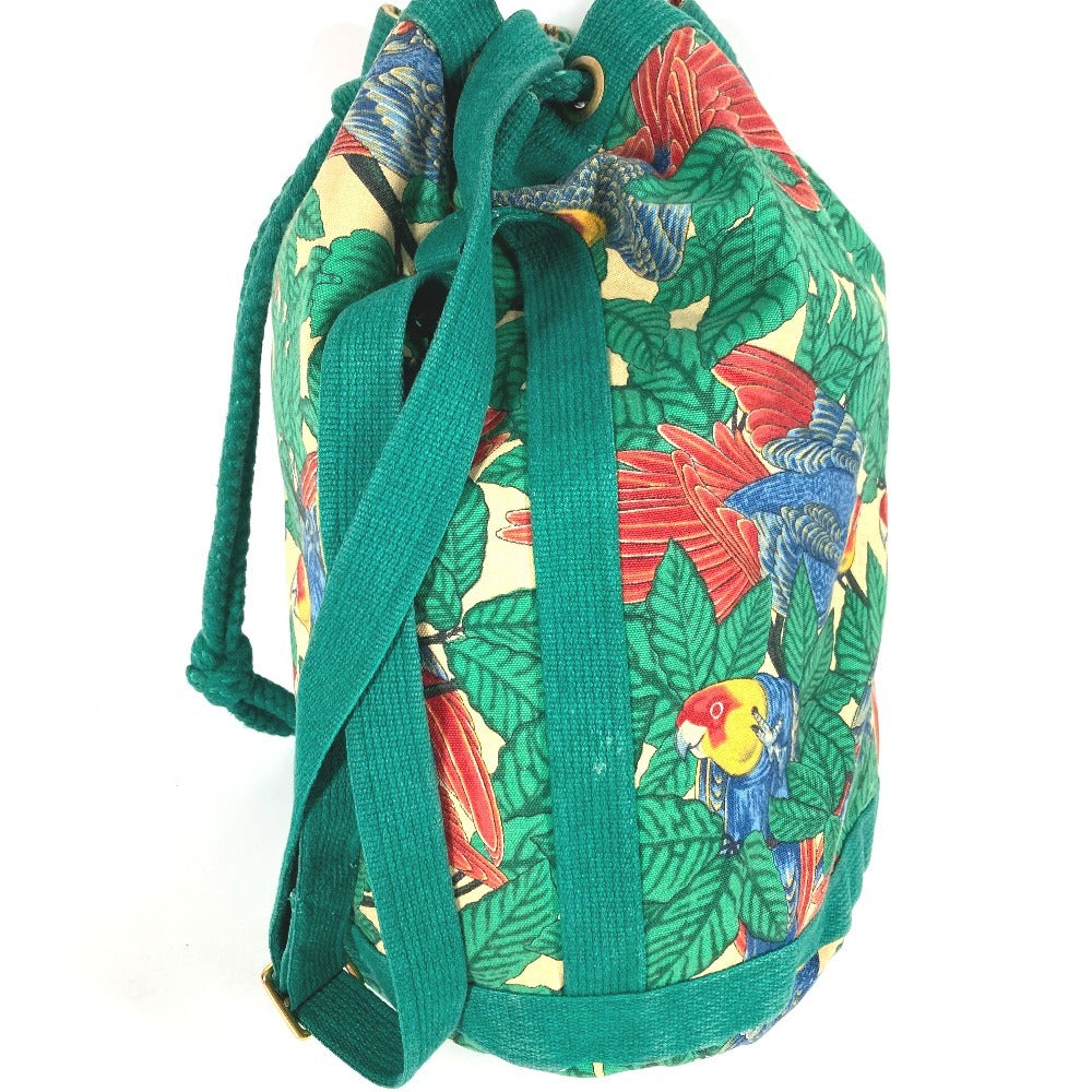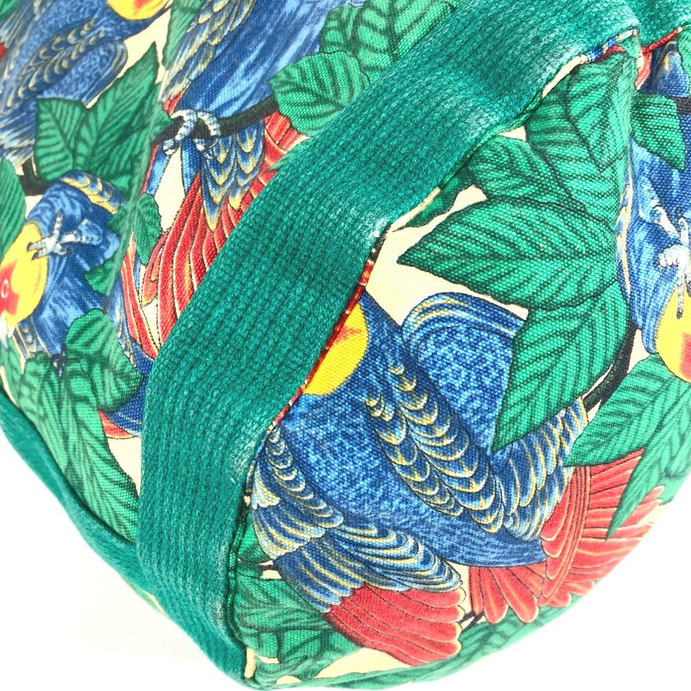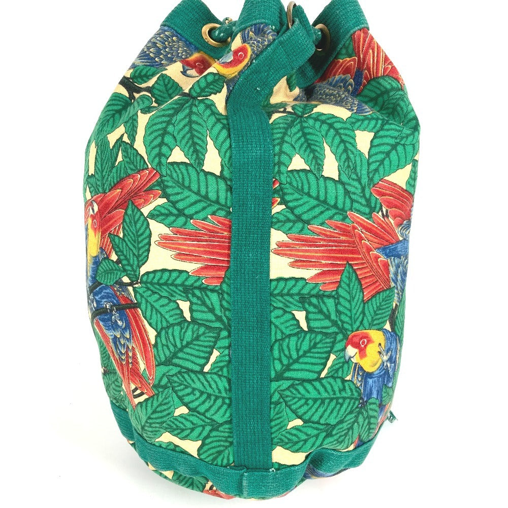 HERMES ヴィンテージ 鳥柄 カバン 肩掛け 巾着バッグ ショルダーバッグ コットン レディース グリーン