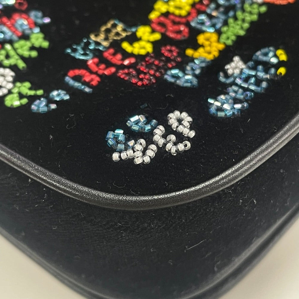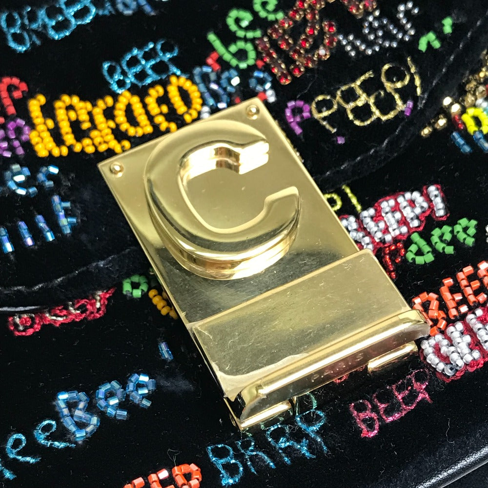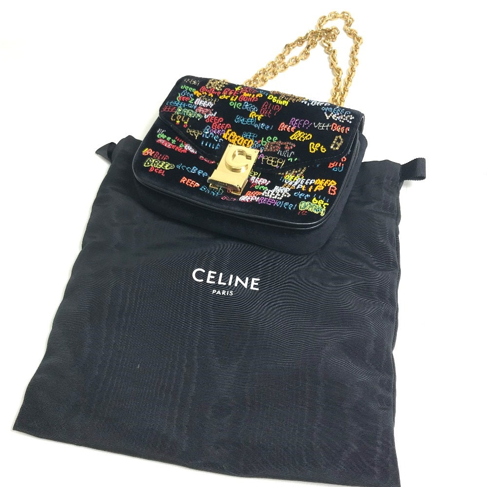CELINE スモールC マルチビーズ カバン チェーンバッグ ショルダーバッグ スエード レディース ブラック×マルチカラー