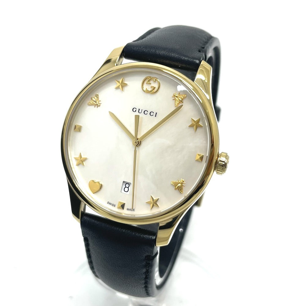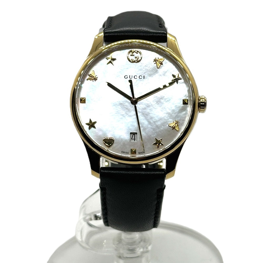 GUCCI YA126.4 ウォッチ マザーオブパール クォーツ デイト 腕時計 SS レディース ゴールド
