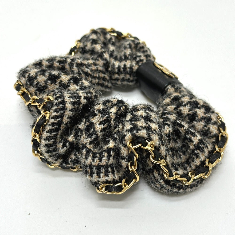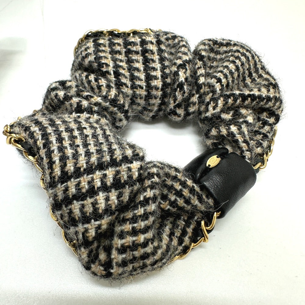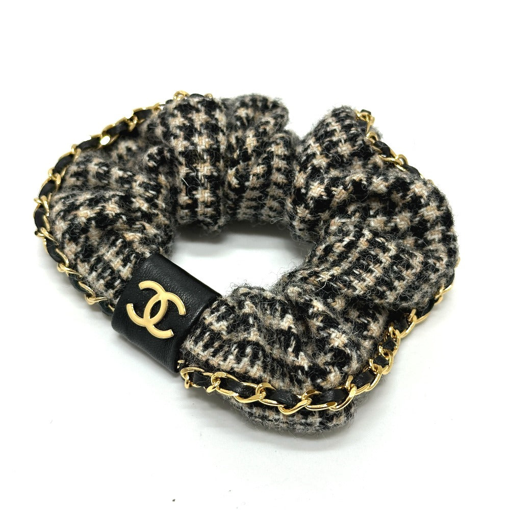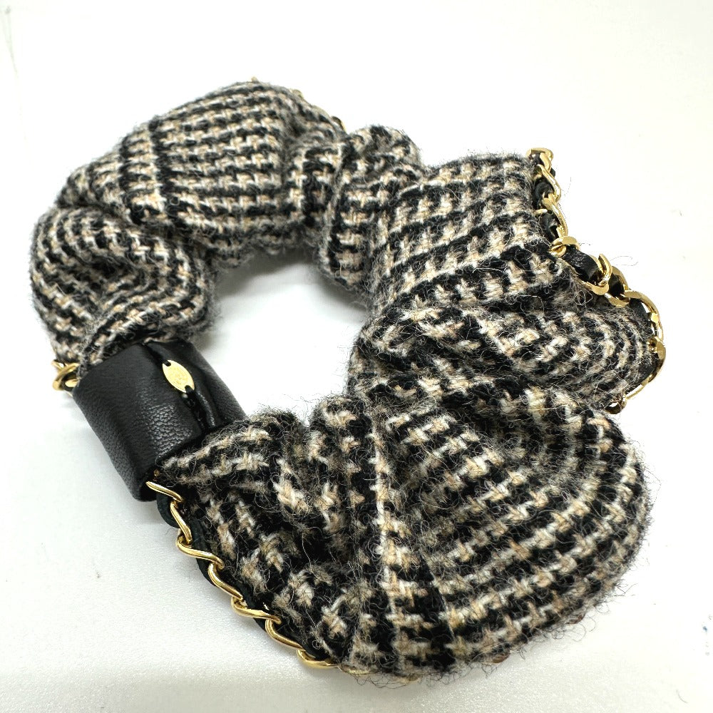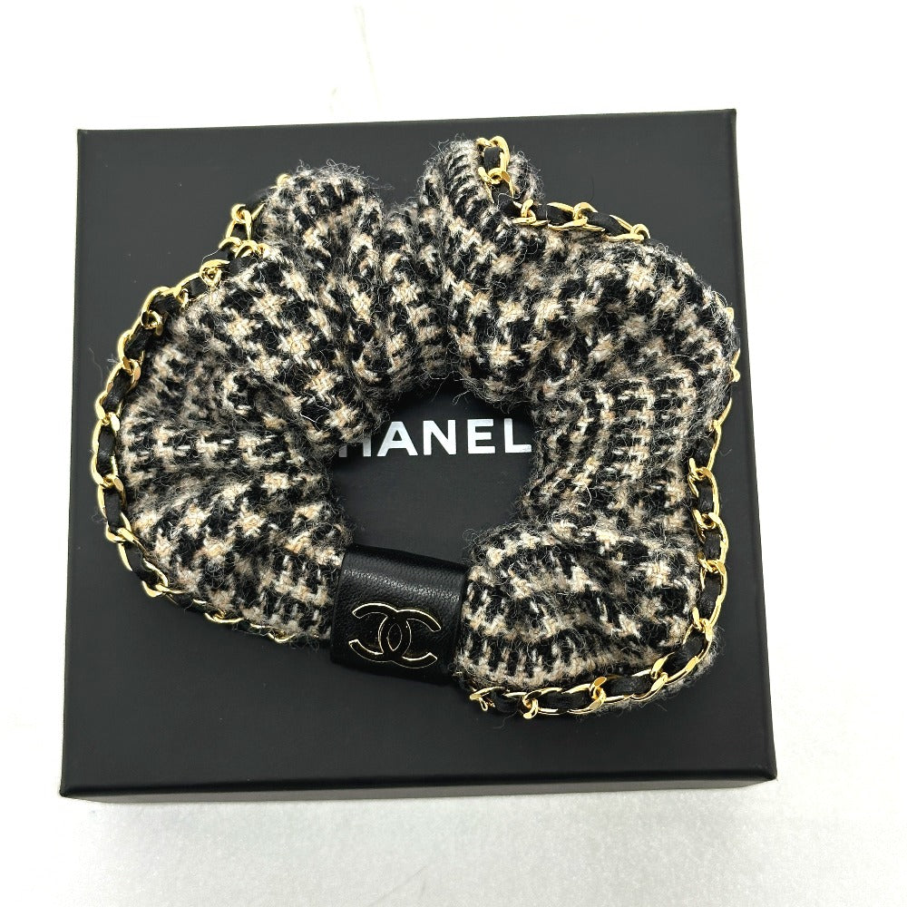 CHANEL ココマーク 千鳥格子 ヘアアクセサリー チェーン A22K ヘアゴム シュシュ コットン レディース ベージュ