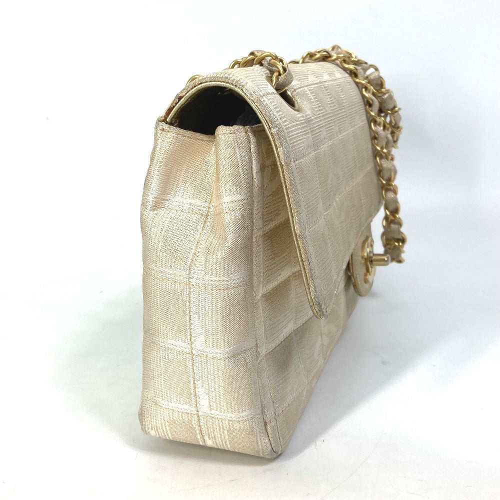 CHANEL ココマーク CC チョコバー Wチェーン 斜め掛け ショルダーバッグ キャンバス レディース