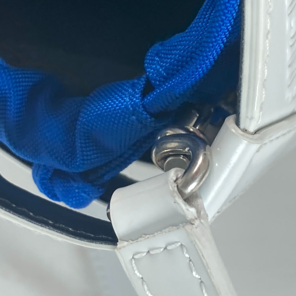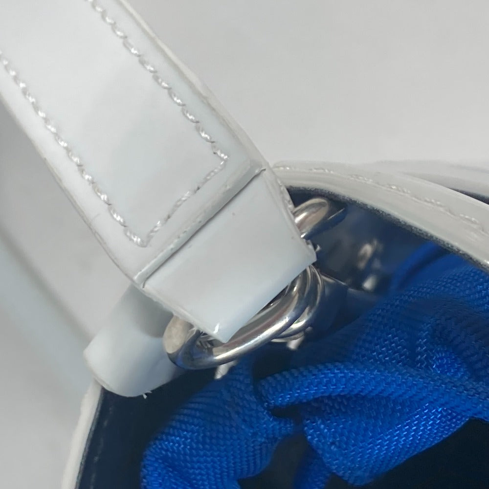 BALENCIAGA 630708 ポーチ付き 総柄 総ロゴ カバン 2WAYバッグ ショルダーバッグ 斜め掛け ハンドバッグ パテントレザー レディース ホワイト