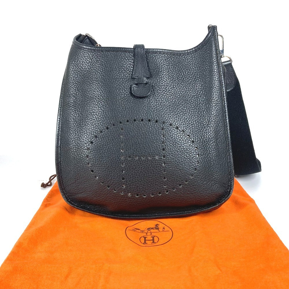 HERMES Hパンチングロゴ エブリン2 PM 斜め掛け カバン ショルダーバッグ トリヨンクレマンス ユニセックス ブラック