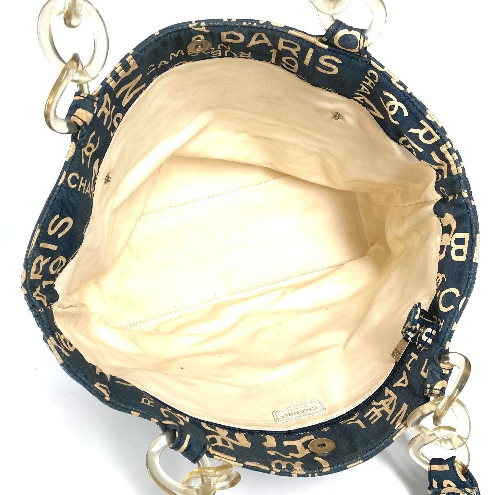 CHANEL バイシーライン ロゴ ショルダーバッグ 肩掛け 携帯ポーチ付き プラスチックチェーン トートバッグ キャンバス レディース ネイビー