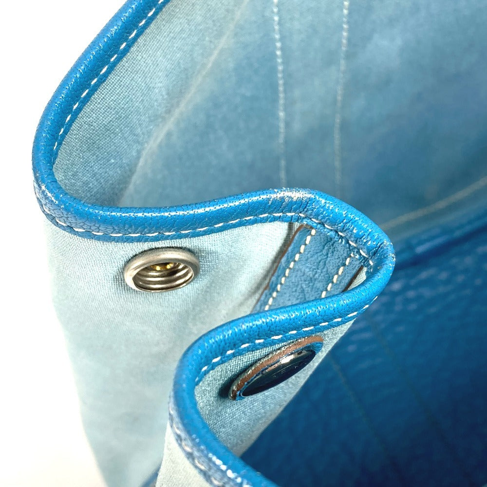 HERMES Garden Party TPM Toile Officier Leather Handbag/Tote Bag, Blue, Women's