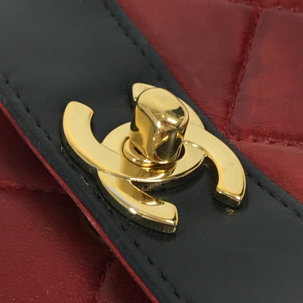 CHANEL キルティング マトラッセ CC ココマーク ロゴ フラップ カバン 肩掛け ハンドバッグ バイカラー ショルダーバッグ レザー レディース レッド