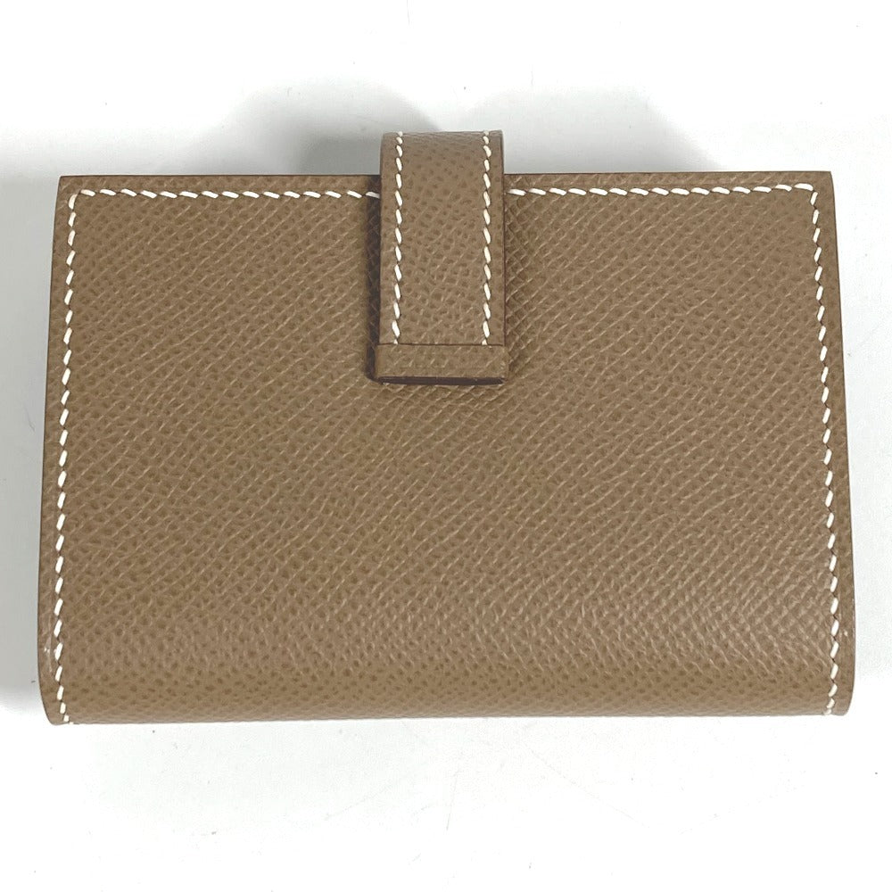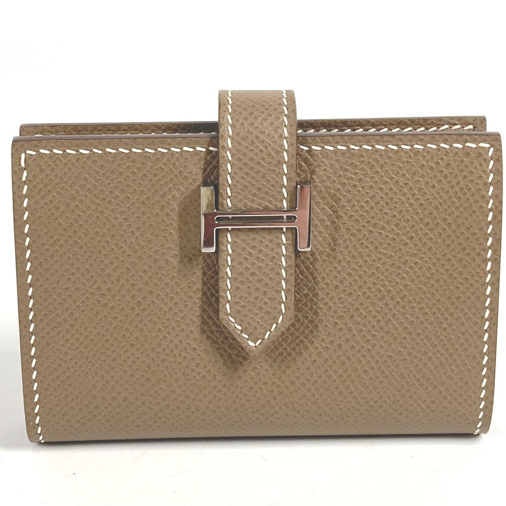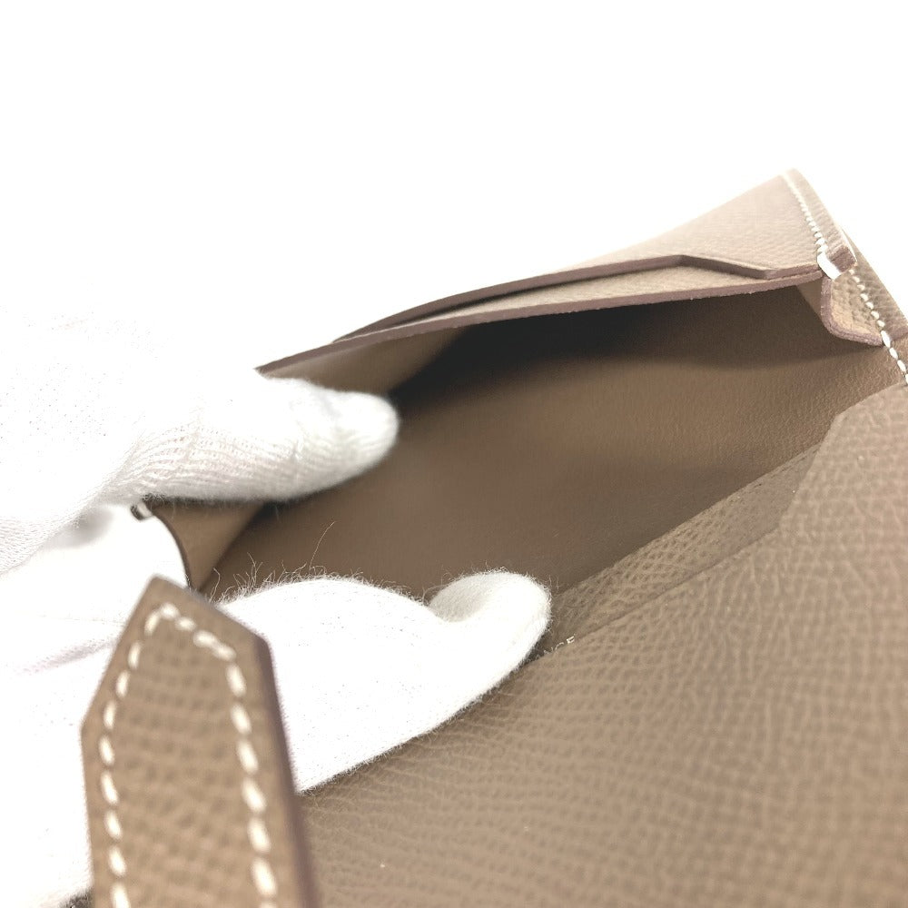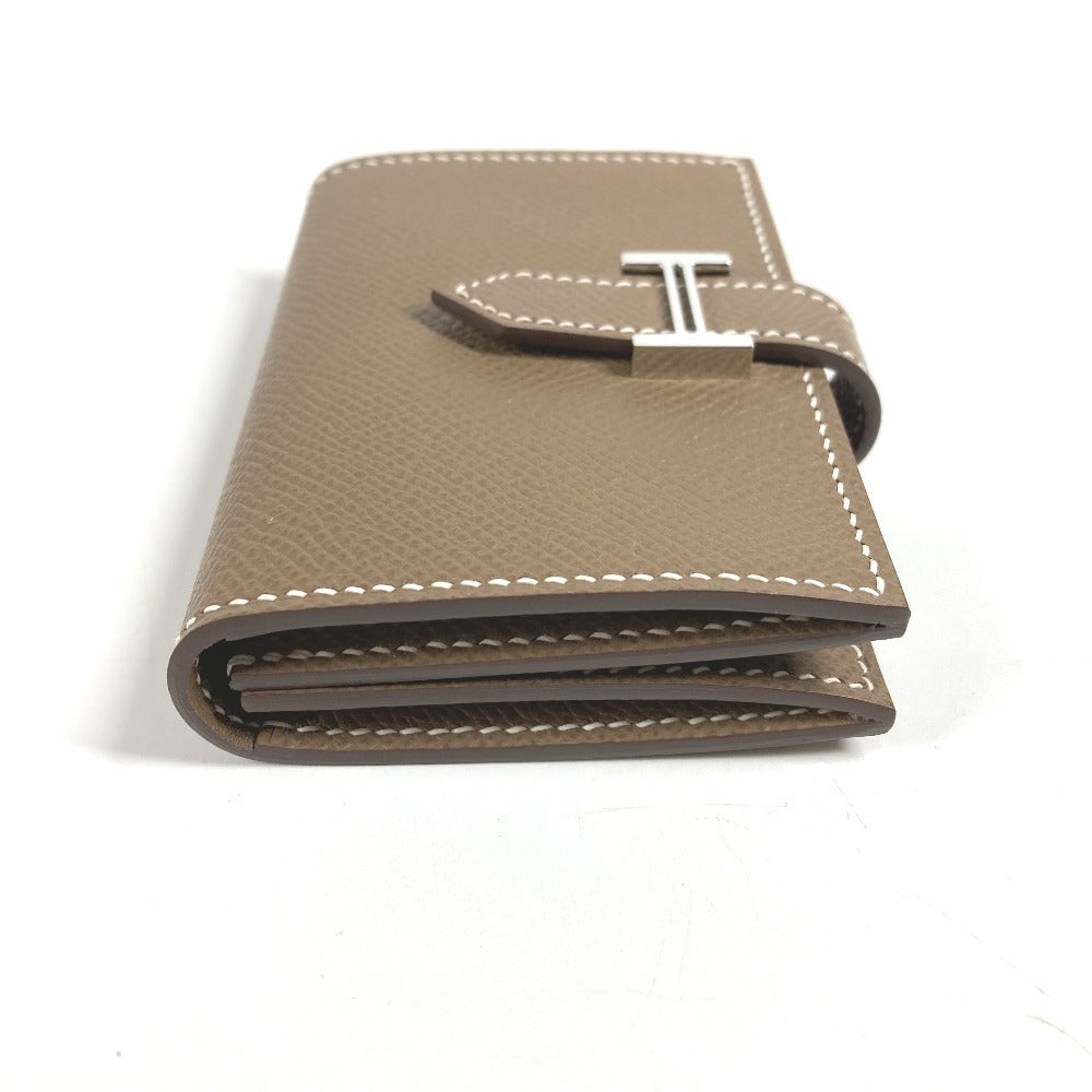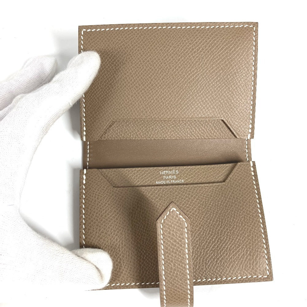 HERMES ベアン Hロゴ 名刺入れ パスケース 2つ折り カードケース レザー ユニセックス エトゥープ ベージュ系