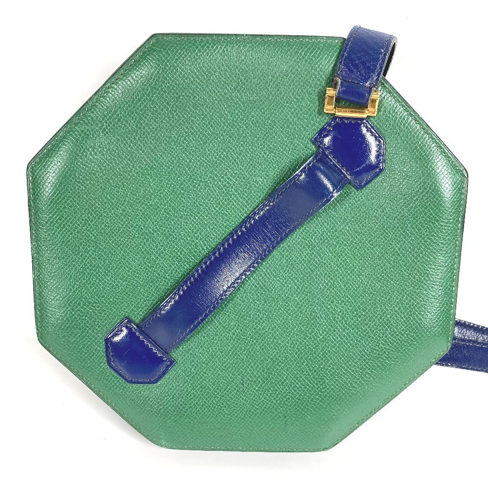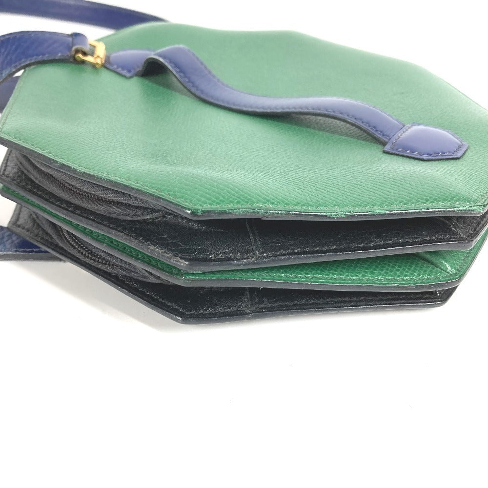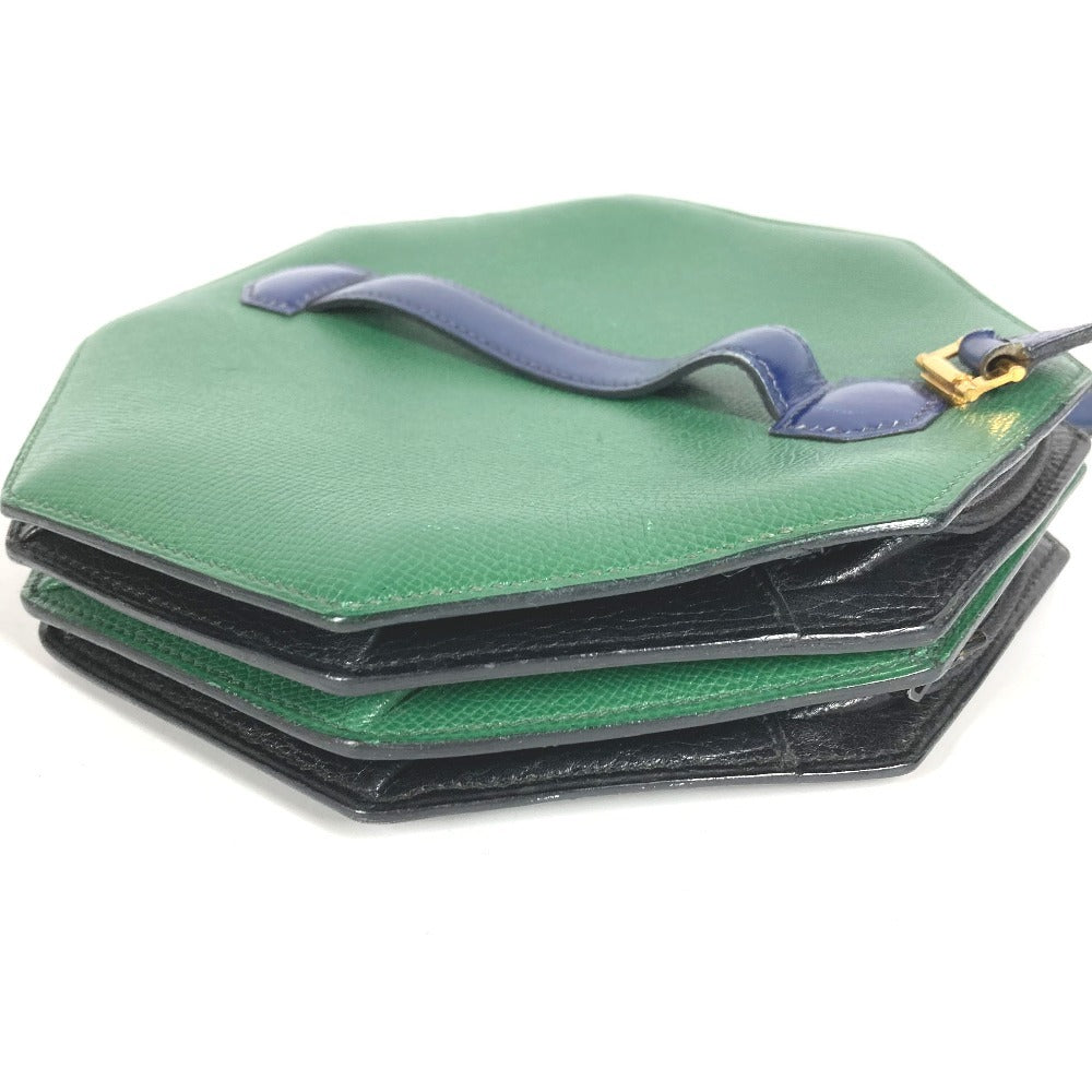 HERMES ヴィンテージ バンドネオン 2WAYバッグ ハンドバッグ クラッチバッグ 斜め掛け ポシェット バイカラー ショルダーバッグ レザー ユニセックス グリーン×ブルー