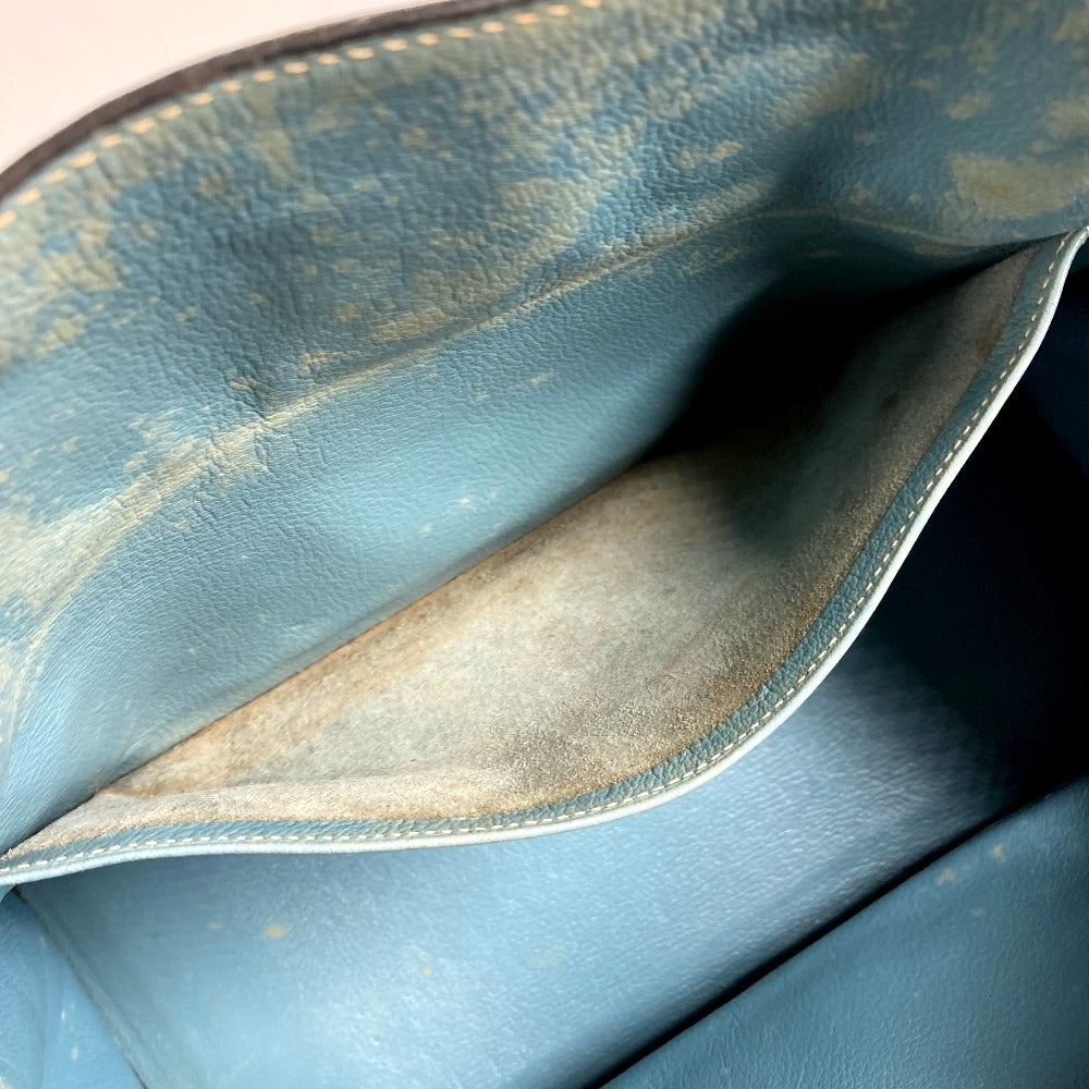 HERMES ヴィンテージ バンドネオン 2WAYバッグ ハンドバッグ クラッチバッグ 斜め掛け ポシェット バイカラー ショルダーバッグ レザー ユニセックス グリーン×ブルー