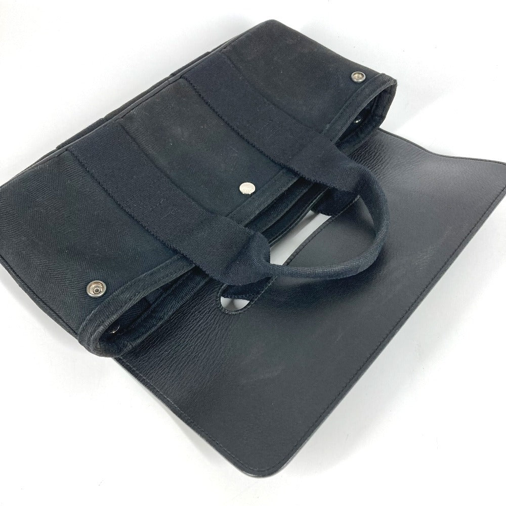 HERMES Valparaiso Long PM Tote Bag/Handbag in Canvas/Leather, Unisex, Black