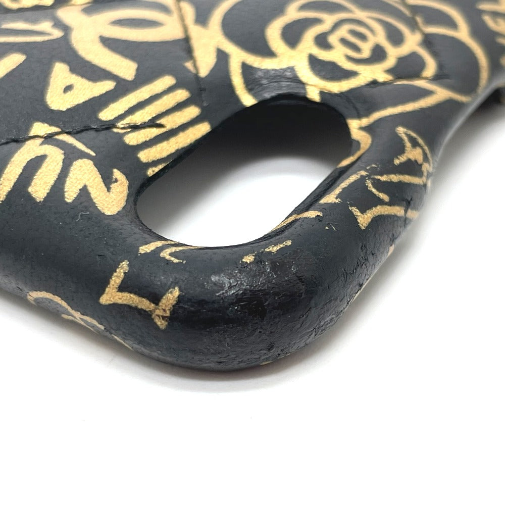 CHANEL Camellia CC Coco Mark Matelasse iPhone X & XS 2019AW Calfskin Case, Women's, Black and Gold