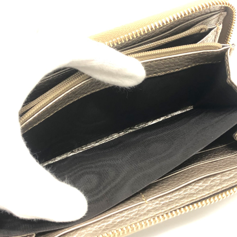 GUCCI 307984 Bamboo Continental Wallet, Round Zipper, Leather, Women's, Champagne Gold